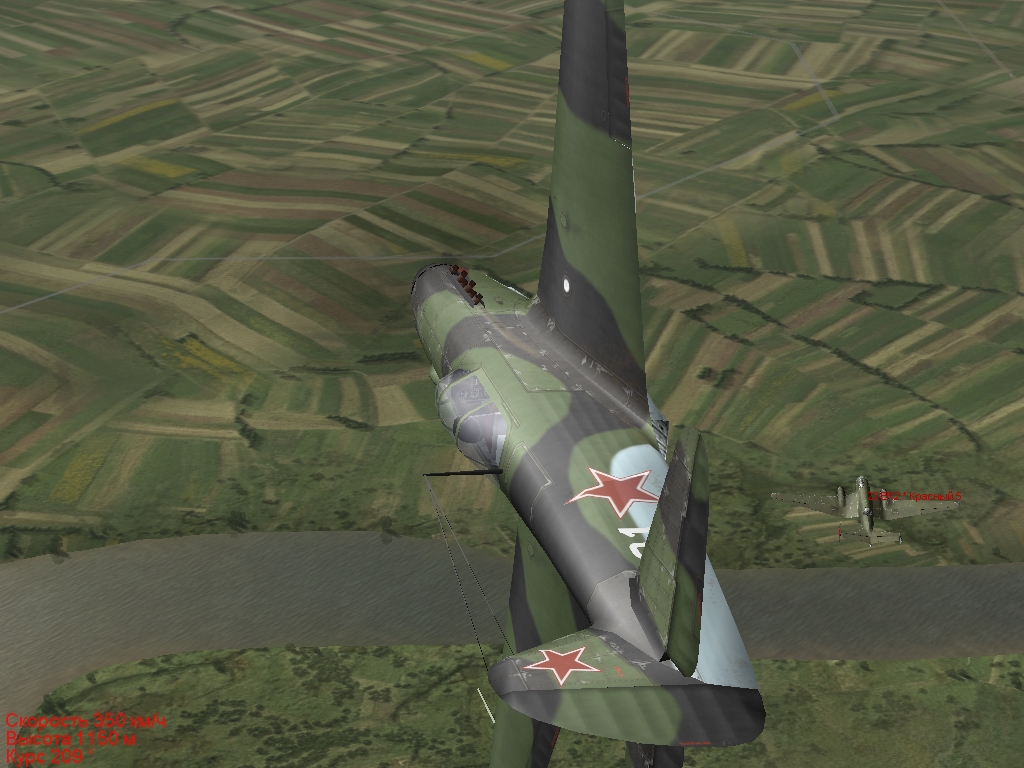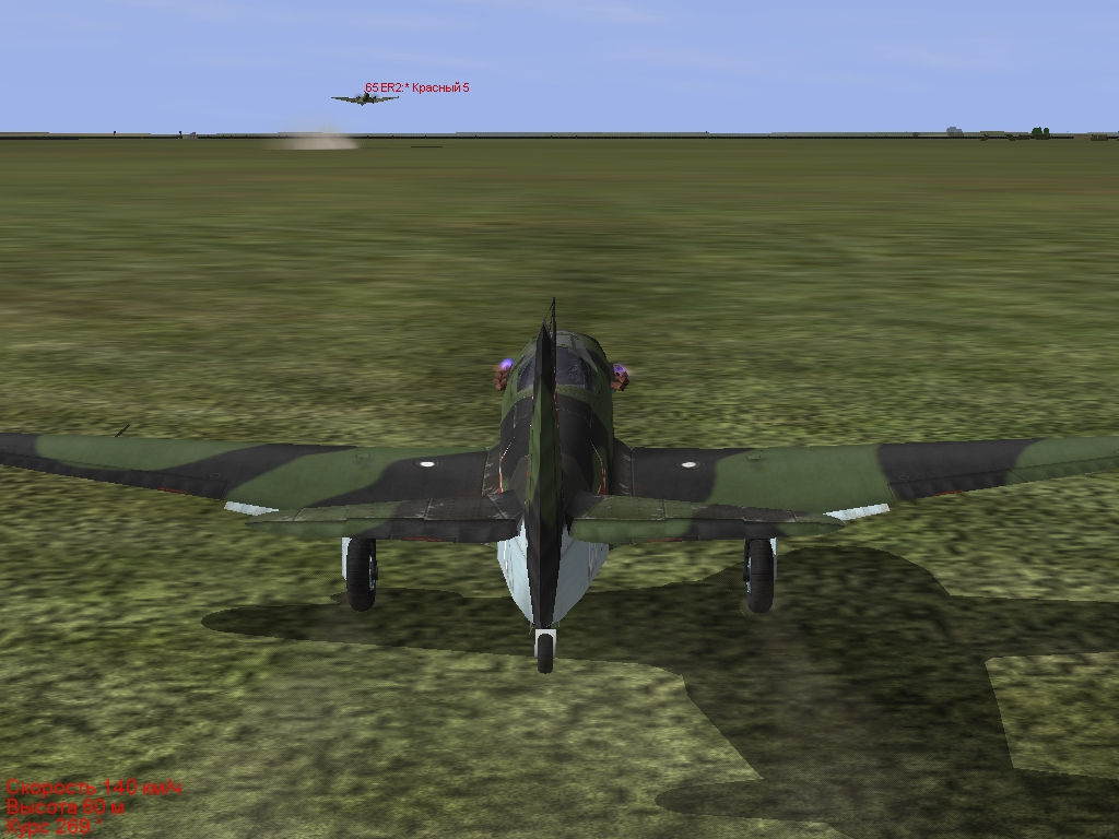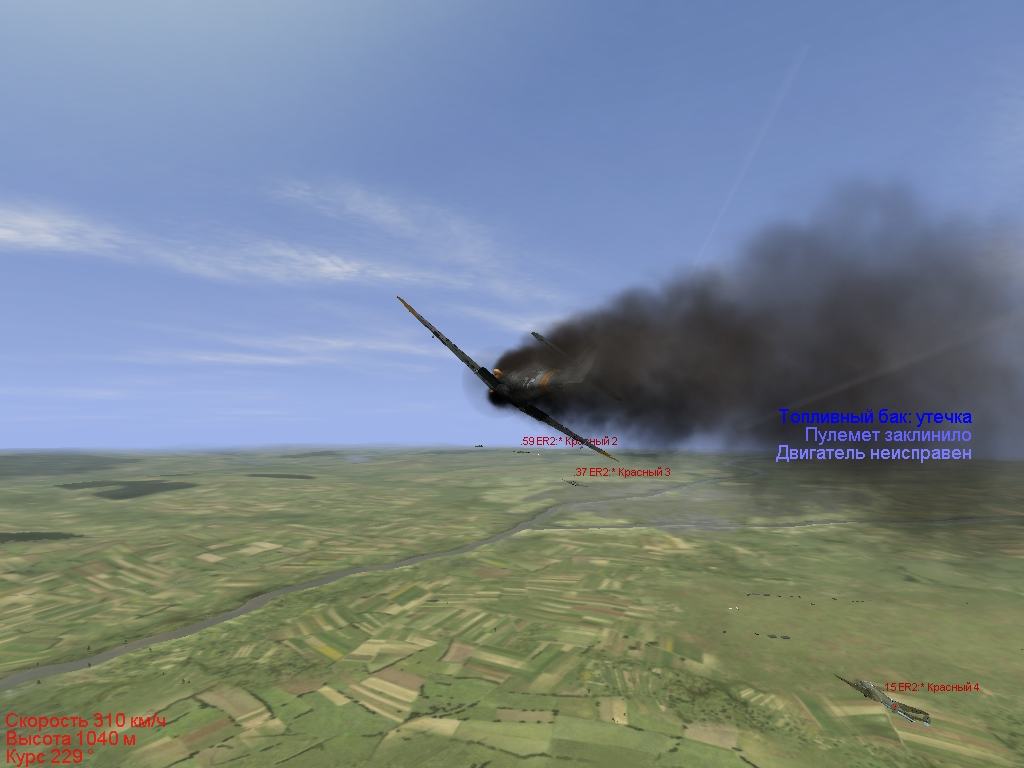 2. После взлета нашей пары, даю команду ведомому атаковать звено, а сам, пока, нахожусь на безопасном удалении от звена и наблюдаю за действиями ведомого (он ас). Через непродолжительное время дружными усилиями бортовых стрелков Ер-2 мой ведомый сбит. Тогда в атаку иду я, при этом активно маневрирую по высоте и курсу, но то же получаю очередь в мотор и выхожу из боя. Т.е и оборонительное стрелковое вооружение у Ер-2 работает хорошо.