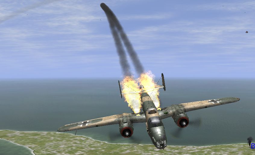 Спасибо всем! Помогло целиком заменой папки «Aircraft» и файлами в «EXTURES» в которых есть слово «Smoke». Теперь вопросы: Как поменять дым за вырывающимся из баков пламенем, что на скрине с Миттчелом? Сделать его покороче, и плавно исчезающем в конце. А не так, что как обрезали. Кстати, судя по видео ганкамов, ну и по фоткам с классической книжки «Gun Camera World WarII» При таком пламене из баков, дыма уже практически нет. Зато в самом начале, при первом разрыве бака, вываливается огненный ком с чёрным дымом. Ну в жизни конечно всё более разнообразней. И ещё, как поубавить дым от некоторых упавших крафтов, что на другом скрине, со спитом. Этот дым дико тормозит игру при взгляде на него, и если находишься очень близко.