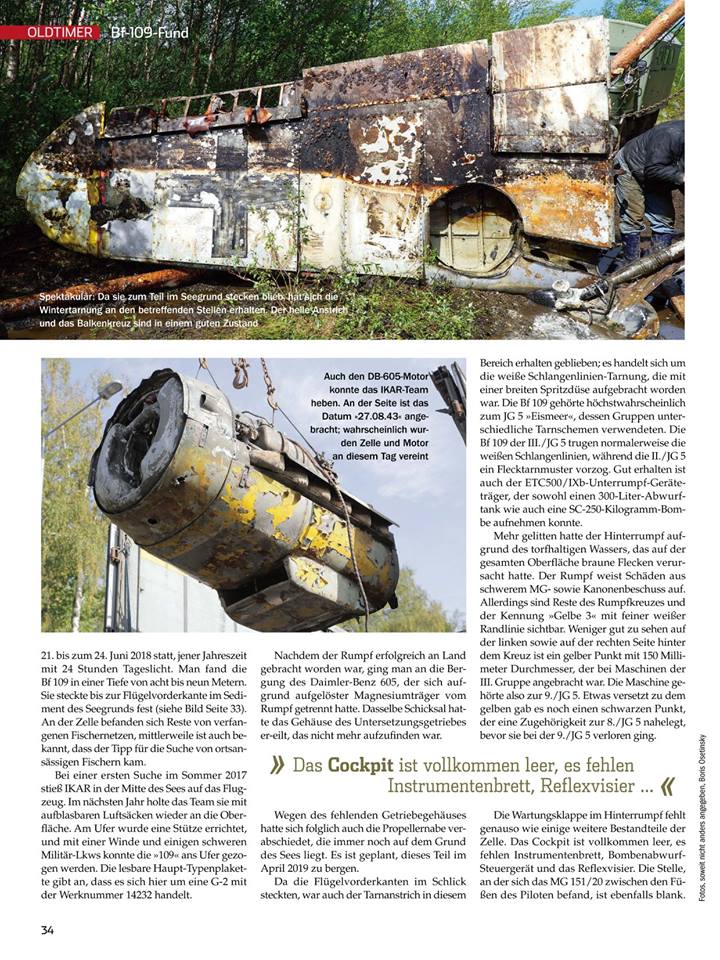 В втором номере Flugzeug Classic за 2019 год появилась статья с подробным рассказом о недавно поднятом Bf-109 G2. выложил Игорь Злобин.