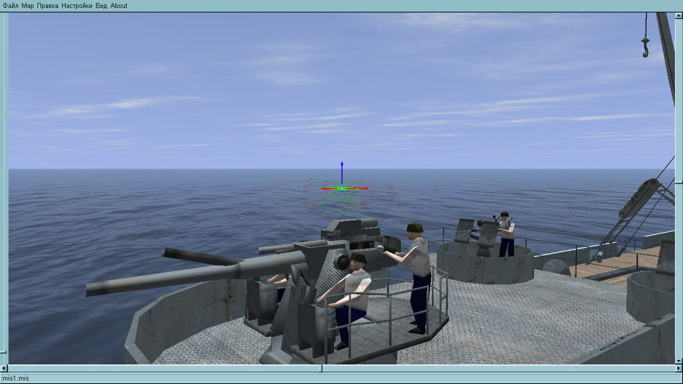Сейчас уперся в странную непонятность. Мерцание орудия на корме и отсутствие частей орудия. Вроде все проверил и масштабирование, и материалы, и правильность наложения текстур. Все бестолку. На скрине идет наложение с моделью повреждений но это нормально (смотрю в полном редакторе) Почему то мерцает только одно орудие, причем его модель повреждения вполне нормальна.