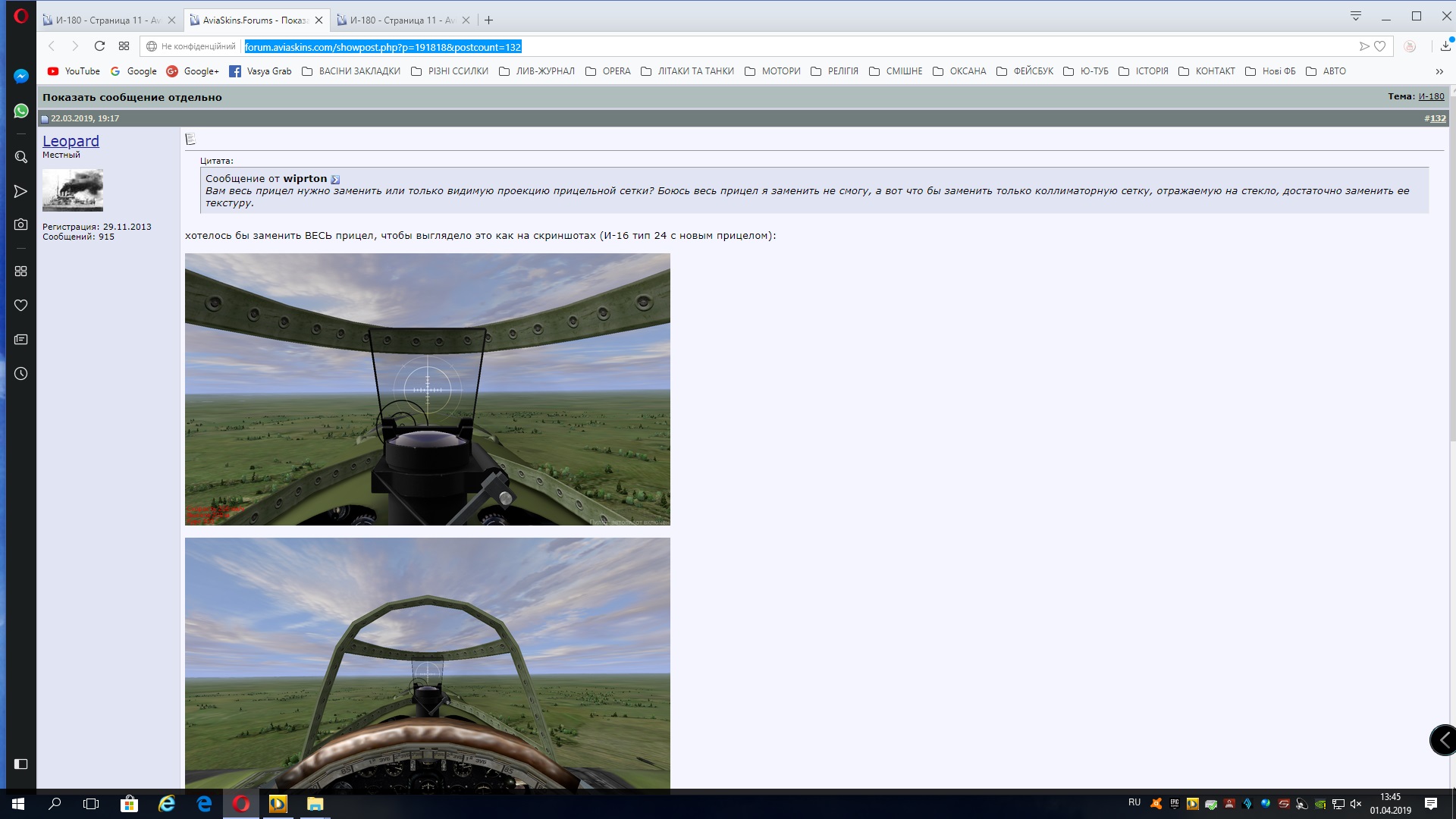 Модов минимум - см. картинку выше в посте № 209. Кроме моих модов для Мессеров, Яков и вооружения с ракетами, установлен AImods_4.12.2 от АИ-Лидера и фиксы на 3До - исправление кривости нескольких дефолтных самолётов и пушек/бочек/домиков/вокзалов и подобное., все фикчы не требуют прописки и меняют внешний вид дефолта. Ещё стоит белый дым для повреждений и мод облаков. Немного перекраски карт, конечно, но на 6Доф они не влияют., мне так кажется. ![]() Последний раз редактировалось Vasya; 01.04.2019 в 13:54. |