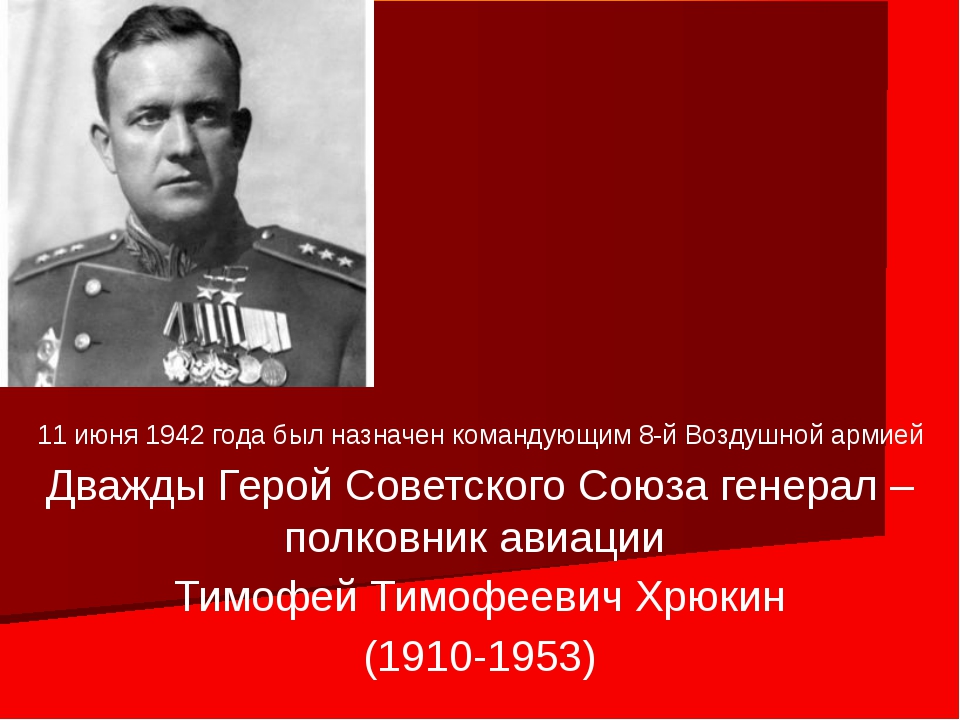 Книга Б.Губина и В.Киселева «Восьмая воздушная» - этой воздушной армией в годы войны командовал генерал Хрюкин Т.Т., в составе этой армии был и знаменитый истребительный полк асов – 9-ый ГИАП.