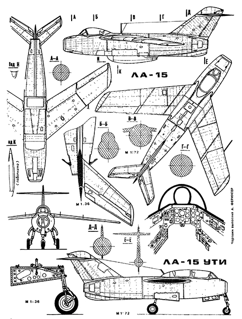 Как я понял, наш коллега Моlva приступил к созданию виртуального советского реактивного истребителя 1-го поколения ЛА-15. Будем надеяться, что он появится на свет и заранее спасибо его конструктору! Для всех желающих представляю хорошо иллюстрированные журнальные статьи об этом самолете (вместе с журналами):