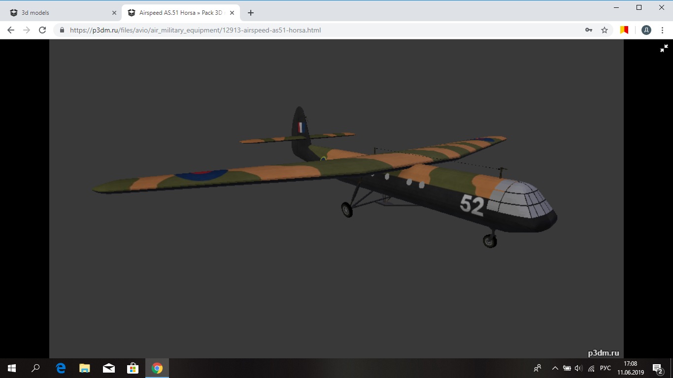 Cмею рекомендовать. AS.51 Horsa, в формате обж. Требует обработки напильником по скольку весит без малого 74К. треугольников. Модель бесплатная качать тут https://p3dm.ru/files/avio/air_milit...s51-horsa.html