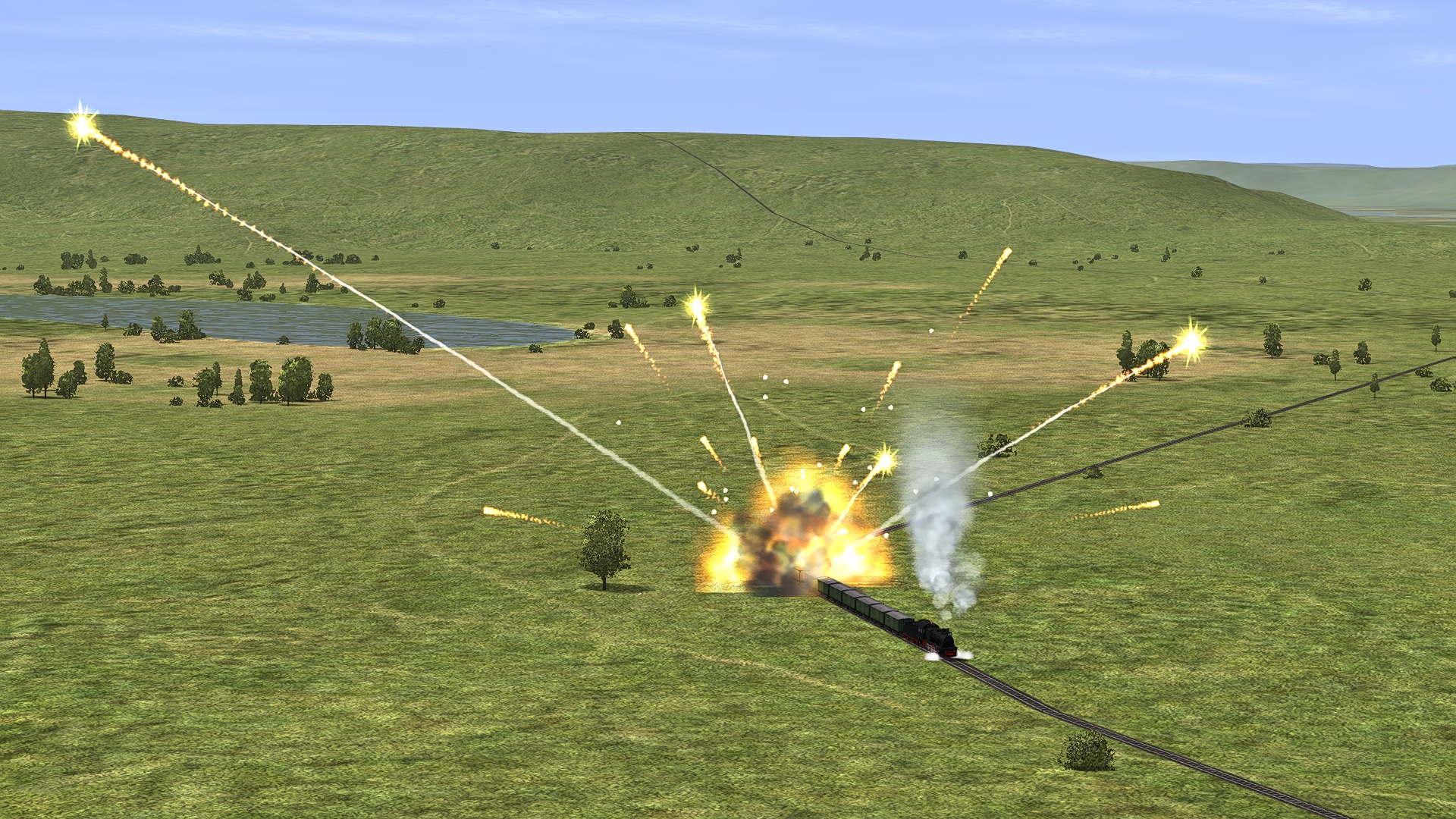 Поправил взрывы: - состава с б/п - убрал мерцающие шары - скрин 1; - платформы с зенами - "ёжик" дымоогня меньше, чем у состава с б/п - скрин 2; - тендера с углём - пусть будет вспышка огня со звуком взрыва, а потом дымоогонь - скрин 3; - малых судов - добавил столб воды - скрин 4. |