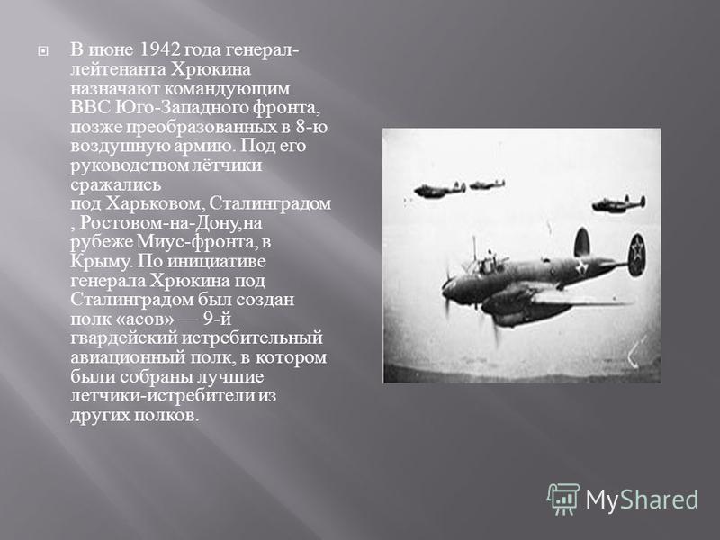 Книга Б.Губина и В.Киселева «Восьмая воздушная» - этой воздушной армией в годы войны командовал генерал Хрюкин Т.Т., в составе этой армии был и знаменитый истребительный полк асов – 9-ый ГИАП.