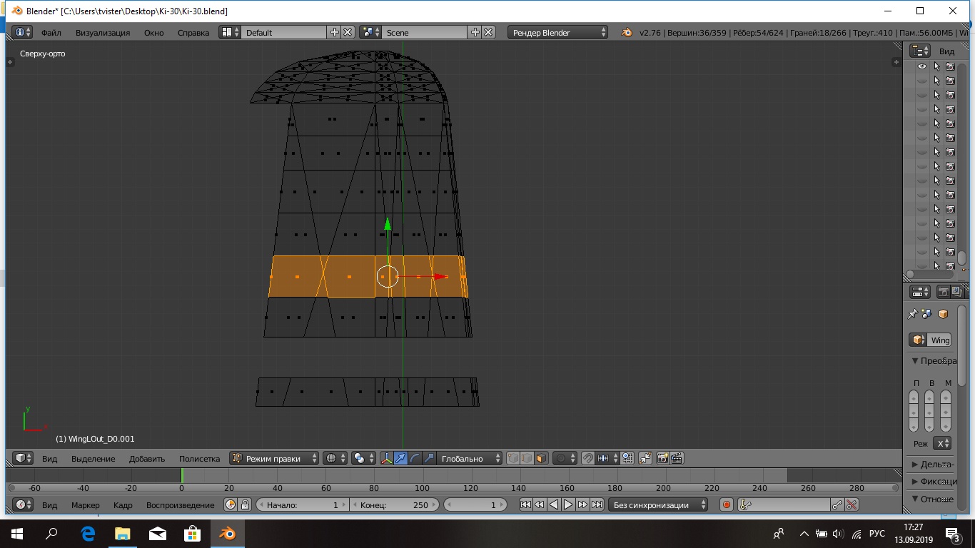 2. нарезаем меш плоскостью в режиме редактирования при помощи команды "пересечение" по линиям заклепок.