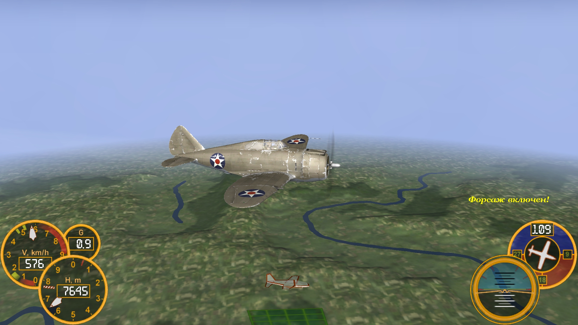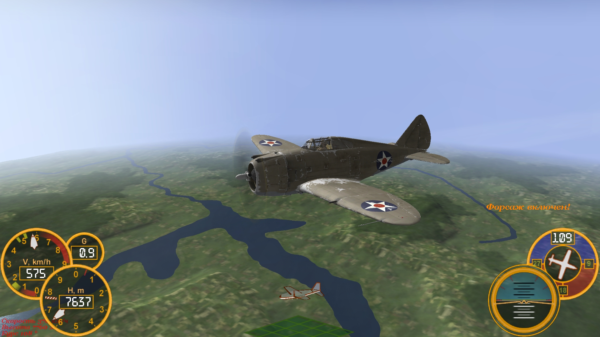 Баги: вираж без потери скорости за 15 секунд., роняется при падении скорости ниже 220 км. в час на посадке., скорость на высоте 4800 метров 642 км. в час с мотором Сабр-2А. Завтра продолжу настраивать и выложу. ‐---------------------------------------- Потихоньку исправляю баги. Самолёт уже не роняется. Для больших оборотов мотора пришлось поставить автомат винта. Вираж уже вошёл в норму - 20-21 секунда. Привожу в порядок сопротивление крыла. Последний раз редактировалось Vasya; 13.10.2019 в 12:16. |