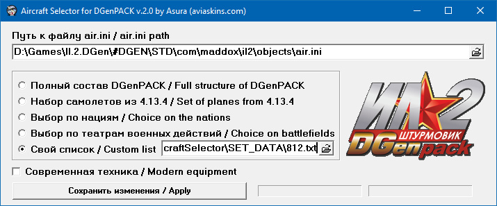 Вообще-то, если не ошибаюсь, воспользоваться селектором можно в любой момент. Но ни у меня, ни у тестеров критичных тормозов над Берлином не было. Правда, кампания тестировалась в безМОДном 4.13.4m (для него и создавалась): там air.ini поскромнее будет, нежели в DGenPACK 2.1, так что и показаний к селектору не возникало (да и нет его в дефолте).