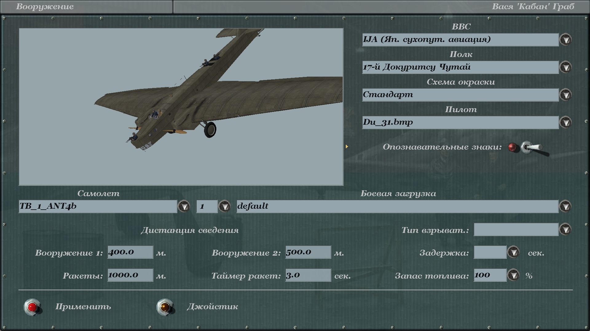 Spawn.get( com.maddox.il2.objects.air.TB_1_ANT4Ski ): null java.lang.NoSuchMethodError at com.maddox.il2.objects.air.TB_1_ANT4Ski.<clinit>(TB_1_ANT4Ski.java:35) https://www.youtube.com/watch?v=kzU9TG0He8I самолёта в патче 4.13.4 полетели. https://www.youtube.com/watch?v=9FRhidZXsqM Должны полететь и в более поздних патчах - классы "самодостаточны" в общем то. -------------------------------------------------- К тому же сам мод откровенно сырой - там не совсем рабочие кулэмэтныкы. Нужно всё 3До перетряхивать и согласовывать с кодом и строками крев-функшен в фм. Очень часто мододелы выпускают "изделия" абы-як. Последний раз редактировалось Vasya; 08.11.2019 в 01:48. |