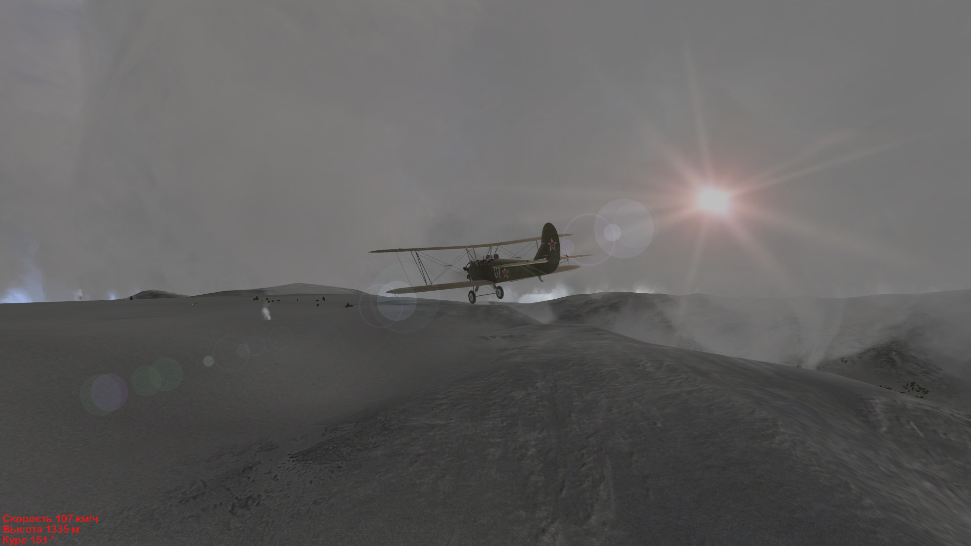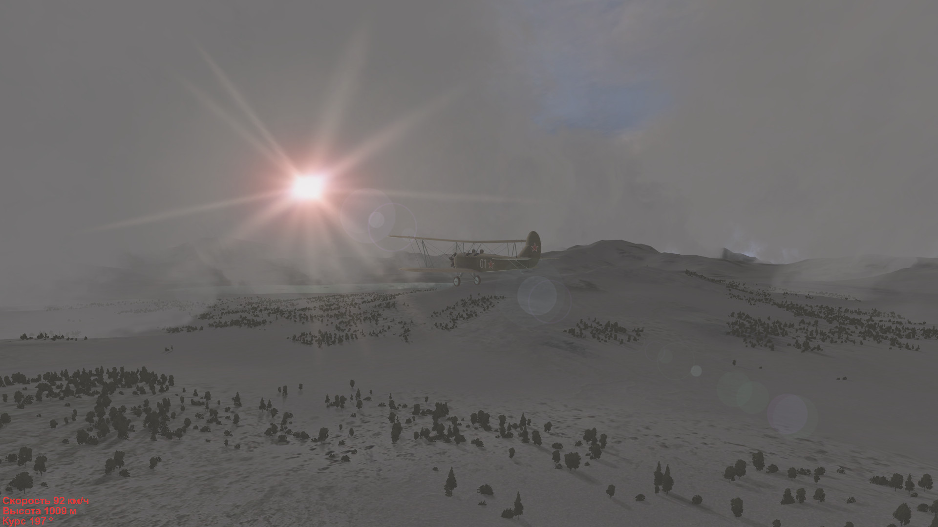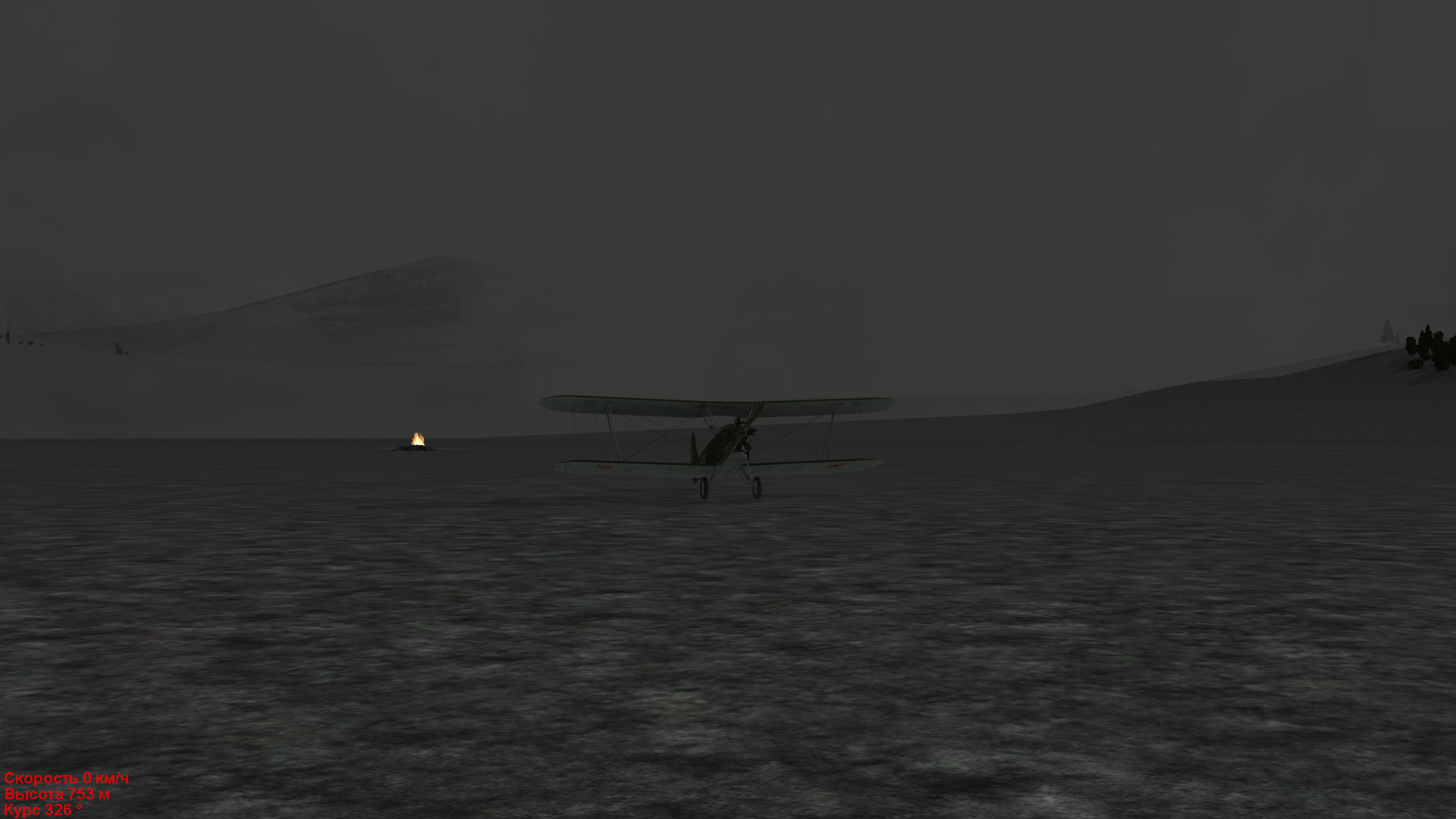 Обидно, но в БАТ не пошло. Сначала У-2 оказался висящим в небе на колодках. Причина оказалась в тестовой ВПП. Убрал ее - но не смог найти пункт назначения, как ни крутился. В полном почему-то костров также не видно. Жаль. А вообще почему б не сделать миссию на арктических картах?