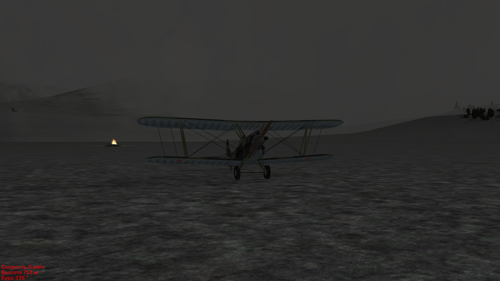 Обидно, но в БАТ не пошло. Сначала У-2 оказался висящим в небе на колодках. Причина оказалась в тестовой ВПП. Убрал ее - но не смог найти пункт назначения, как ни крутился. В полном почему-то костров также не видно. Жаль. А вообще почему б не сделать миссию на арктических картах?