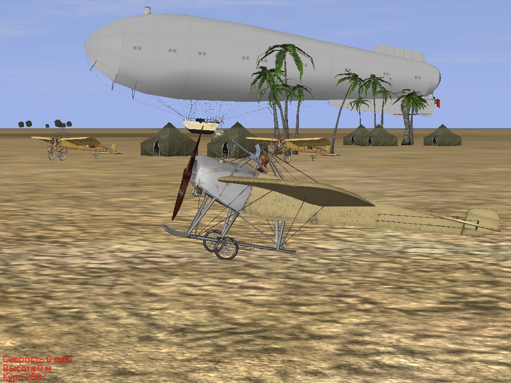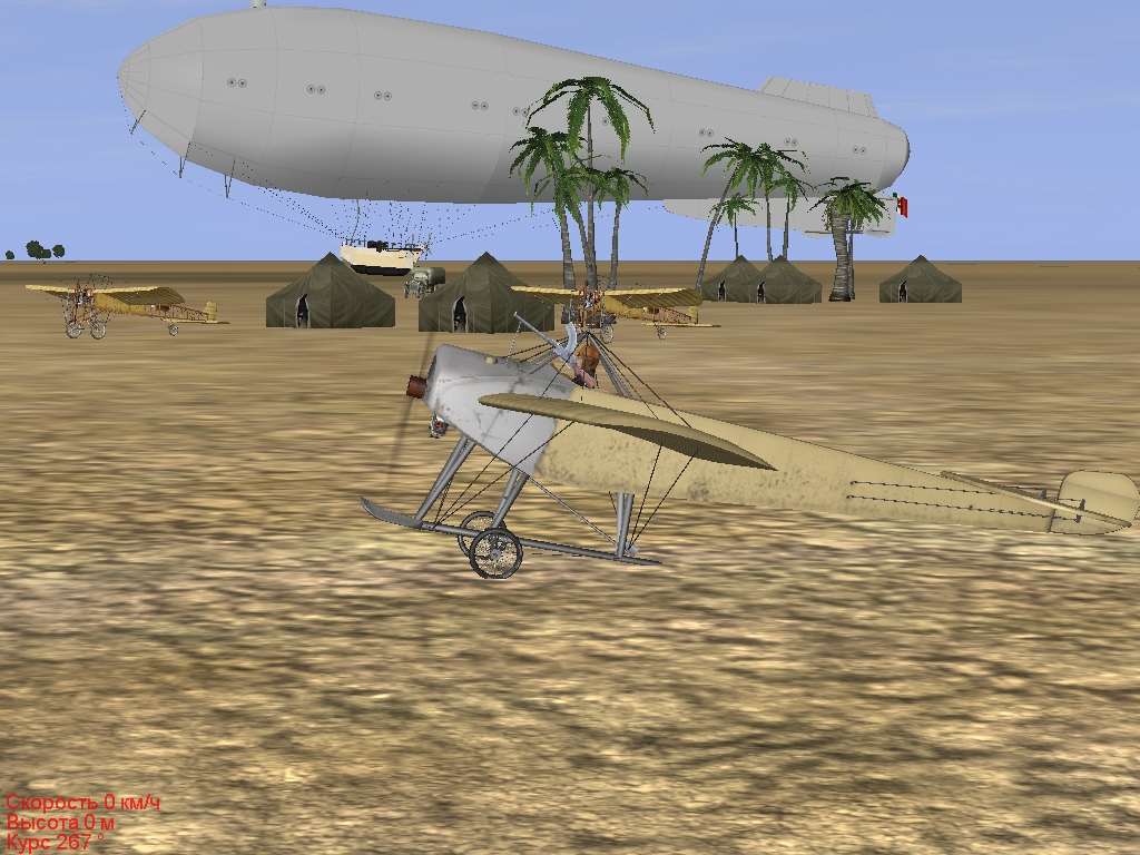 Задача. 2 ноября 1911 года, 13 час 30 мин. Метеоусловия – простые. Вы сопровождаете наш военный дирижабль Р.1, который будет наносить мощный бомбовый удар по турецко/арабским войскам в пригороде г. Триполи. Необходимо пройти над войсками противника, по которым будет нанесен удар, и сфотографировать его результаты – высота полета не менее 200 м. После выполнения задания произвести посадку на своей площадке, зарулить на самолетную стоянку. Результаты фоторазведки передать командованию. При выполнении посадки будьте внимательны, дирижабль Р.1 так же будет производить посадку на нашу общую площадку. |