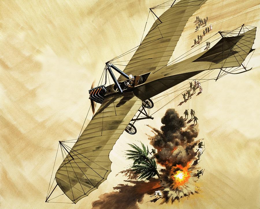 Также, прилагаю очень интересную книгу о семействе самолетов «Таубе» - И.Гриценко «История создания и службы аэропланов типа Taube» и несколько рисунков, посвященных первому боевому применению авиации (бомбардировка турецко-арабских войск лейтенантом Джулио Гавотти с самолета Таубе). |