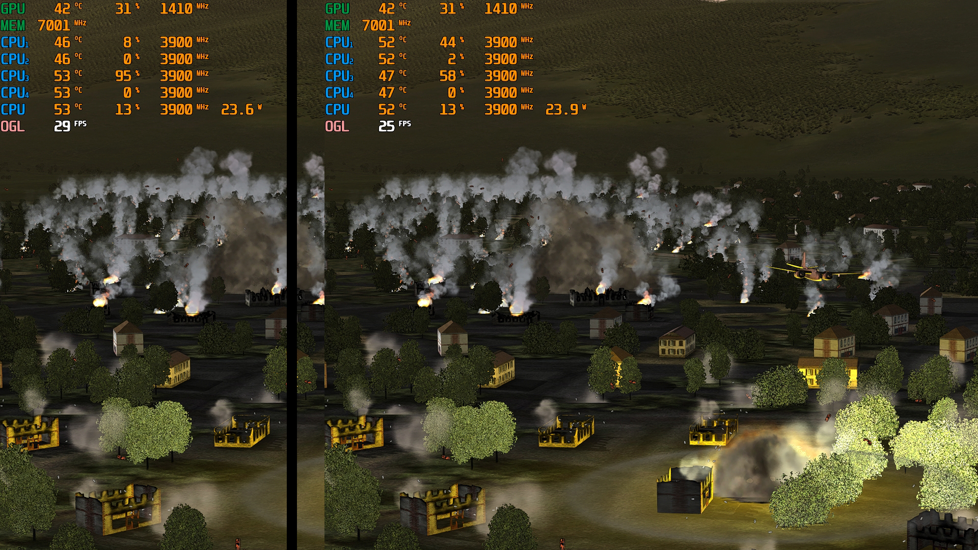тормозов нет! Все настройки максимум+верт.синхро. И это с обычного харда ![]() ![]() В ДГП3.0 та же миссия - слайдшоу сразу же. Неиграбельно напрочь. Ролик Зе Блэк дэс в ВПМпаке еле заметно фризил на сериях взрывов наземки. А вот взрыв в ролике Мистель тормознул как обычно. Драйвер 441.41. В Бенчмарках от Юниджин показало разгон до 2100 по ГПУ. В Иле даже и в Армаде - 1530. ![]() Проц нагружен на 30%. Общий вывод: 1650S для Ила на старом железе ну очень впритык (без SSD или Райда). ЗЫ: с откл. верт.синхро без разгона фпс за 100 , но фризы все равно случаются.