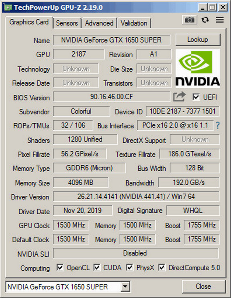 Присунул 441.87+обнову ГПУ_Зет от Гиков - заработало! Потому как новые фичи и полная поддержка 1650С появились.