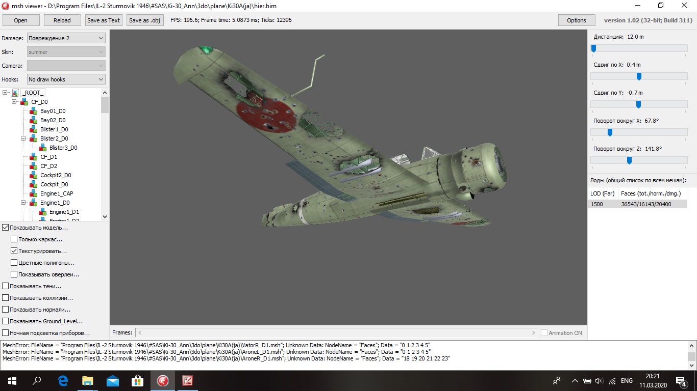 Победа! Поставил ХитБон от Ар-196, скорректировав названия коллизий (у Вел-ов они называются по другому), получил работающую модель повреждений для крыла. К сожалению убедился, что все модели использующие повреждения от Д3А1-Д3А2, имеют неправильную модель повреждения крыла.