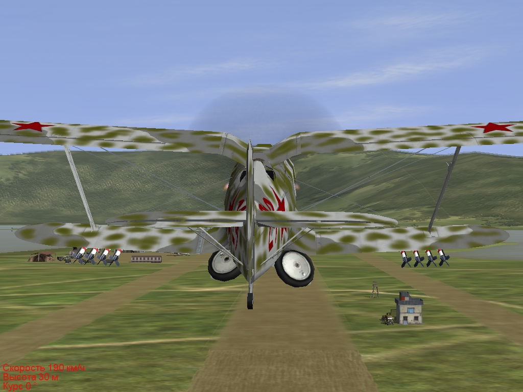 Миссия 17. Текст брифинга: 1 мая 62510 г. до Н.Э. 10час 00мин. Аэродром «ПОБЕДА-3». Несмотря на наступившие первомайские праздники, интенсивная учебно-боевая подготовка на УТК «ПОБЕДА» продолжалась – времени до начала ВОВ в СССР-41 оставалось совсем немного. Накануне генерал Захаров самостоятельно вылетел на новом пушечном истребителе-биплане И-190. Этот высокоманевренный боевой самолет был многоцелевым и в воздушной армии Захарова он будет, в ограниченном количестве, использоваться и как истребитель и как легкий штурмовик. В прошлой истории в первые месяцы войны советские войска подверглись массированным и очень эффективным бомбовым ударам немецких пикирующих бомбардировщиков Ju-87. Самолет этот, хоть и был тихоходным, но имел мощное бомбовое и стрелковое вооружение, был достаточно маневренным, а его пикирующие возможности обеспечивали высокую точность бомбометания (он был как бы прообразом современного высокоточного оружия). В состав экипажа этого самолета входил и воздушный стрелок, обеспечивающий оборону задней полусферы самолета. Очень досаждали нашим войскам и тихоходные, но высокоманевренные тактические немецкие самолеты-разведчики FW-189, прозванные нашими солдатами «Рамой». Сбить Раму, что зенитной артиллерией, что истребителями, было далеко не просто - этот самолет так же имел воздушного стрелка, защищавшего ЗПС, да и в состав его экипажа, как правило, входили очень опытные летчики. Наши солдаты часто говорили «увидел раму – жди бомбардировщиков». Вот против таких тихоходных, но маневренных воздушных целей, а так же слабо бронированных наземных и надводных целей и был предназначен многоцелевой истребитель И-190. На сегодняшний день генералу Захарову был запланирован не совсем обычный учебно-боевой полет на многоцелевом истребителе И-190. Задача: 1. Выполнить взлет и набор высоты 1300 м. Выйти в квадрат С/2, обнаружить и уничтожить пушечным огнем две воздушные мишени – немецкие пикирующие бомбардировщики Ju-87D7. Они парой выполняют полет по заданному маршруту. 2. После поражения пары Ju-87 набрать высоту 2000 м и выйти в квадрат D/5. Обнаружить и уничтожить пушечным огнем одиночную воздушную мишень – немецкий тактический разведчик FW-189. Все воздушные мишени не имеют бортового вооружения и управляются экипажем самолета ТУ-126 – его эшелон полета 1500 - 5000 м. 3. После поражения FW-189 выйти на наземный полигон УТК «ПОБЕДА», расположенный в квадрате В/4. Снизиться до высоты 500 метров, сделать несколько кругов над полигоном, выбрать наземную цель и поразить ее неуправляемыми ракетами и пушечным огнем. Посадку произвести на аэродром «ПОБЕДА-3» и зарулить на его южную стоянку. Весь маршрут полета указан в полетной карте, погода на маршруте – ПМУ. Будьте внимательны – в районе аэродрома «ПОБЕДА-3» идут интенсивные плановые полеты. Вариант вооружения вашего самолета: 8хRs82. Скин вашего самолета: стандарт. ОЗ должны быть выключены. |