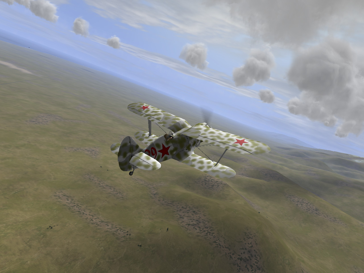 Миссия 17. Текст брифинга: 1 мая 62510 г. до Н.Э. 10час 00мин. Аэродром «ПОБЕДА-3». Несмотря на наступившие первомайские праздники, интенсивная учебно-боевая подготовка на УТК «ПОБЕДА» продолжалась – времени до начала ВОВ в СССР-41 оставалось совсем немного. Накануне генерал Захаров самостоятельно вылетел на новом пушечном истребителе-биплане И-190. Этот высокоманевренный боевой самолет был многоцелевым и в воздушной армии Захарова он будет, в ограниченном количестве, использоваться и как истребитель и как легкий штурмовик. В прошлой истории в первые месяцы войны советские войска подверглись массированным и очень эффективным бомбовым ударам немецких пикирующих бомбардировщиков Ju-87. Самолет этот, хоть и был тихоходным, но имел мощное бомбовое и стрелковое вооружение, был достаточно маневренным, а его пикирующие возможности обеспечивали высокую точность бомбометания (он был как бы прообразом современного высокоточного оружия). В состав экипажа этого самолета входил и воздушный стрелок, обеспечивающий оборону задней полусферы самолета. Очень досаждали нашим войскам и тихоходные, но высокоманевренные тактические немецкие самолеты-разведчики FW-189, прозванные нашими солдатами «Рамой». Сбить Раму, что зенитной артиллерией, что истребителями, было далеко не просто - этот самолет так же имел воздушного стрелка, защищавшего ЗПС, да и в состав его экипажа, как правило, входили очень опытные летчики. Наши солдаты часто говорили «увидел раму – жди бомбардировщиков». Вот против таких тихоходных, но маневренных воздушных целей, а так же слабо бронированных наземных и надводных целей и был предназначен многоцелевой истребитель И-190. На сегодняшний день генералу Захарову был запланирован не совсем обычный учебно-боевой полет на многоцелевом истребителе И-190. Задача: 1. Выполнить взлет и набор высоты 1300 м. Выйти в квадрат С/2, обнаружить и уничтожить пушечным огнем две воздушные мишени – немецкие пикирующие бомбардировщики Ju-87D7. Они парой выполняют полет по заданному маршруту. 2. После поражения пары Ju-87 набрать высоту 2000 м и выйти в квадрат D/5. Обнаружить и уничтожить пушечным огнем одиночную воздушную мишень – немецкий тактический разведчик FW-189. Все воздушные мишени не имеют бортового вооружения и управляются экипажем самолета ТУ-126 – его эшелон полета 1500 - 5000 м. 3. После поражения FW-189 выйти на наземный полигон УТК «ПОБЕДА», расположенный в квадрате В/4. Снизиться до высоты 500 метров, сделать несколько кругов над полигоном, выбрать наземную цель и поразить ее неуправляемыми ракетами и пушечным огнем. Посадку произвести на аэродром «ПОБЕДА-3» и зарулить на его южную стоянку. Весь маршрут полета указан в полетной карте, погода на маршруте – ПМУ. Будьте внимательны – в районе аэродрома «ПОБЕДА-3» идут интенсивные плановые полеты. Вариант вооружения вашего самолета: 8хRs82. Скин вашего самолета: стандарт. ОЗ должны быть выключены. |