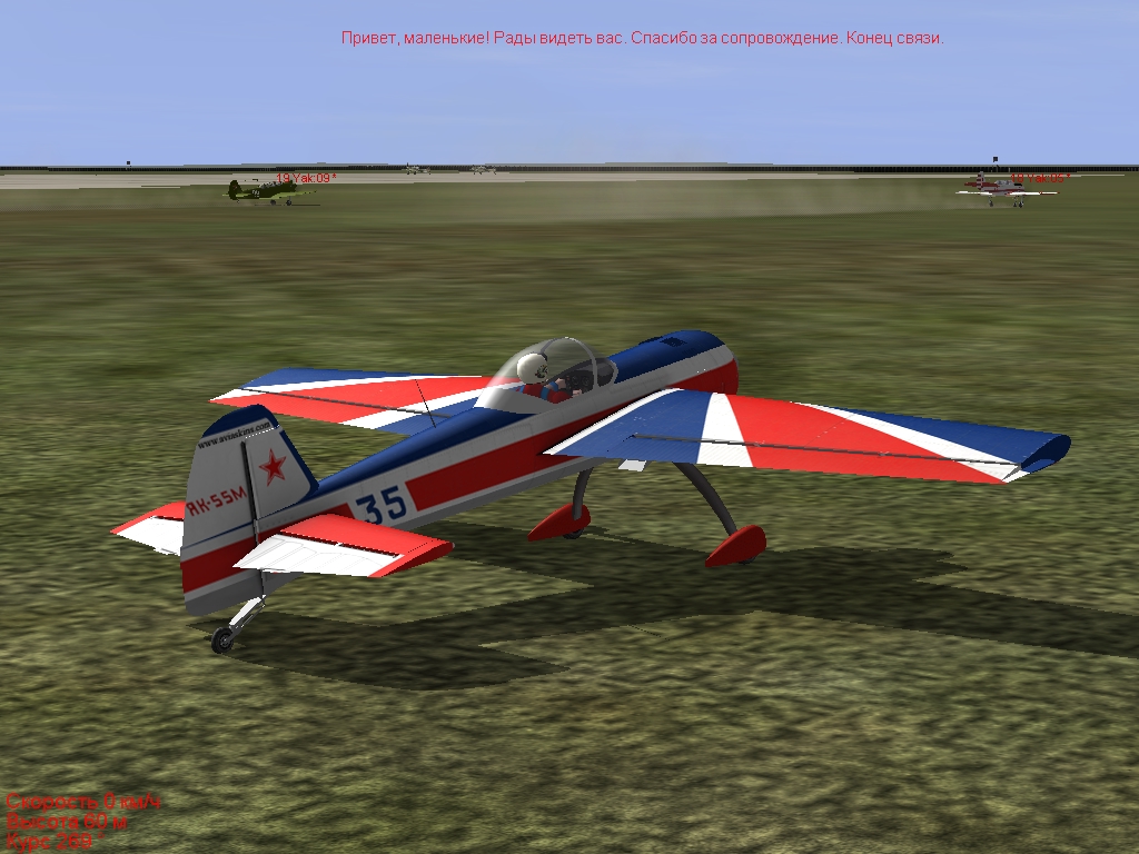 - приборы кокпита (передняя кабина) ЯК-18 не работают, задней кабины самолета нет. - кокпит ЯК-52 схематичен, почти пустой и его два единственных прибора не работают, задней кабины то же нет. - ЛТХ обоих самолетов не соответствуют их реальным прототипам (видимо, надо писать новые FM для них?), так ЯК-18 (с двигателем М-11) легко разгоняется у земли до V=500 км/час и практически без потери скорости легко набирает Н=7000 м – 2 скриншота ЯК-18 (вид из кабины) я представляю. В простом редакторе я организовал групповой вылет всех трех самолетов – ЯК-55, ЯК-52 и ЯК-18 (сам я пилотировал ЯК-55), но, увы, на этом современном спортивно-пилотажном самолете так и не смог догнать самолеты 50-х – 70-х годов ЯК-18 и ЯК-52 – скриншоты представляю. А для всех желающих, я выставляю Инструкции летчику: - для самолета ЯК-18 (с двигателем М-11ФР) – она выставлена здесь: http://forum.aviaskins.com/showthread.php?t=720&page=38 - для самолета ЯК-50 (с двигателем М-14П) – представляю ее здесь (инструкций самолетов ЯК-52 и ЯК-55 я, к сожалению, не имею). |