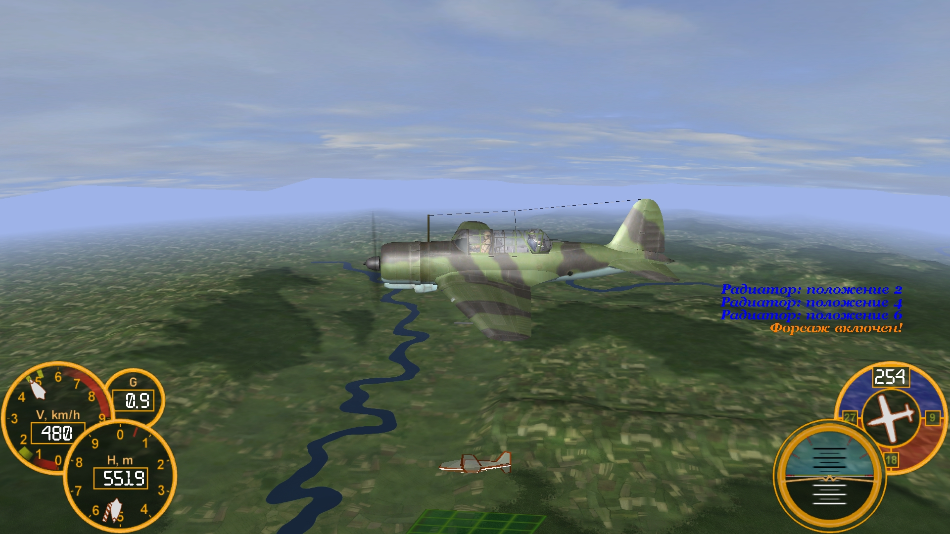 Понадеялся на дефолтную фм, которую взял за основу. Там не было команды для открытия бомболюков, а в классе эта команда была. Скорость проверил - всё в норме - по ттх. ![]() Сделал "заезд" на точно такой высоте. Выставил радиатор 4 - температура масла стабилизировалась на 85 градусах - что очень гут. Замерил скорость на номинале - 429 км. в час истинной скорости. Включил форсаж и приоткрыл створки - радиатор 6 - температура дошла до 98 градусов, что в принцыпе нормально, но для полевой бодяги многовато, поэтому ещё приоткрыл створки - радиатор 8. Замерил скорость - 464 км. в час. ------------------------------ Полный мод для 4.12.2. http://forum.aviaskins.com/showpost....postcount=2577 Последний раз редактировалось Vasya; 06.04.2020 в 03:37. |