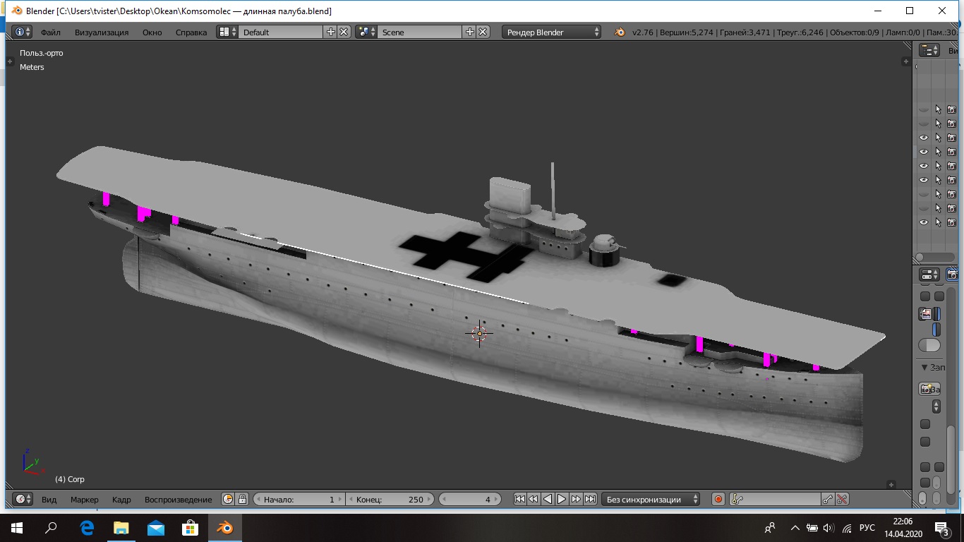 Проект "Комсомолец", закончу в ФШ. Следующий проект попробую на новом Гимпе. Вот проблема, хочу наложить достчатую текстуру полетной палубы с сохранением теней , как на модельке. В Гимпе это можно было сделать, а в ФШ пол дня ничего не могу сделать. Я для себя понял, ФШ,это реально мощный инструмент профессионала, но я то не проф и. А последний Гимп резко прибавил в функционале, в свое время я как ни странно, из-за этого от него отказался.Посмотрим... |