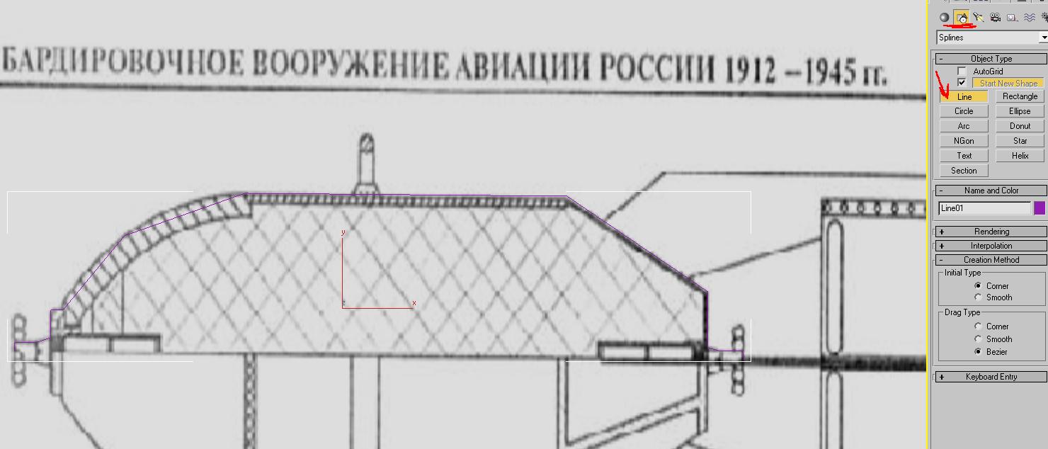 В этом уроке мы сделаем новенькую бомбу для Ил-2. Я не буду рассказавыть вам, как распаковывать sfs файлы и устанавливать моды, так как рассчитываю на то, что вы это знаете. Итак! Для того чтобы сделать собственную бомбу нам необходимо: 1.3d Max 09 2.MshConverter 1-18 http://allaircraftarcade.com/forum/viewtopic.php?t=7473 3.Adobe photoshop (любой, но я предпочитаю CS3) 4.Il-2 Exporter V2.52A http://allaircraftarcade.com/forum/v...ic.php?t=10492 И для начала установим плагин V2.52. Для этого скачайте плагин, откройте коневую папку 3ds max 9, найдите там папку Scripts и скопируйте всё содержимое архива в нее, включая иконку. Всё. Плагин установлен. Теперь мы решим какую бомбу мы будем делать. В этом уроке я сделаю ФАБ-100. Для этого мы лезем в интернет и находим чертежи бомбы, желательно разрешения побольше. Я нашел такой: Так. Теперь загружаем 3д макс и в окне просмотра Front создаем объект plane с размерами такими-же, как наш чертеж. В моем случае это 1570х1165 Теперь открываем редактор материалов (клавиша М) и назначем любому материалу в мтроке Diffuse карту Bitmap. В появившемся окне выбираем наш чертеж. Теперь выделите plane и нажмите в редакторе материалов Assign Material to selection, а затем нажмите Show Map in View, чтобы видеть текстуру в окне просмотра. Чтобы видеть текстуру в окне Front, перейдите в это окно и нажмите клавишу F3. Быть может, что у вас текстура будет очень размытая. Чтобы это исправить, Идите в меню Customize и выберите в нем Preferences... В появившемся окне перейдите во вкладку Viewports и в разделе Display drivers нажмите кнопку Configure Driver. В открывшемся окне Поставьте Background Texture Size на 1024 и Download Texture Size на 512 В обоих пунктах поставьте галочку на Match Bitmap size as Clozely as Possible. После этого нажмите ОК, сохраните работу и перезапустите 3д макс. Получилось? Хорошо! Теперь идите в окно Front и нажмите Maximize Vieport Toggle, чтобы видеть только это окно просмотра. Теперь масимально приближаем чертеж бомбы, выбираем во вкладке Shapes инструмент Line и обводим симметричную ПОЛОВИНУ контура бомбы вот так: Далее настраиваем сплайн так, чтобы он максимально точно повторял контур бомбы и применяем к нему модификатор Lathe. Если моделька у вас построилась неправильно, то настройте в модификаторе параметр Axis и, если надо, поставьте галочку на Flip normals. теперь перейдем к сегментам. Бомба не должна страдать полигональным голоданием, но и не должна быть избыточно детализированой. Постарайтесь найти золотую середину и помните, что в Ил-2 моделька будет выглядеть немного более гладкой, чем в максе. Я поставил Segments на уровень 10. Теперь выделите модель бомбы правой кнопкой мыши и нажмите Convert to --> Editable mesh. Выделите те точки, вокруг которых "вертелась" наша моделька (эти точи долныбыть по центру модели с начала и с конца). и нажмите Weld -> Selected, чтобы соединить их воедино. Если они не соединились, то немного увеличте параметр Selected, но не переборщите, а то задняя и передняя точки соединятся. Теперь перейдем к созданию стабилизаторов и этих крутящихся штук (извините, не знаю, как они называются не спец по бомбам) спереди и сзади бомбы. Я буду звать их пропеллерами)))). Создадим объект Box, который будет лопастью пропеллера. Соответственно он должен иметь длину, ширину и толщину лопасти. Сделаем из него editable Mesh и придадим ему форму треугольника применив Weld к его нижним точкам. Разместим его так, как показано на рисунке (или так, как хотите вы). Теперь настроим точку его вращения. перейдите во вкладку Hierarchy, выберите там Affect Pivot Only и поместите ось враще
