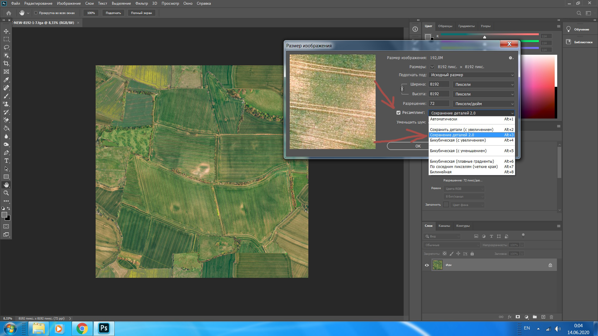 В фотошопе 2020 появился способ изменения размера изображения "Сохранения деталей 2.0"