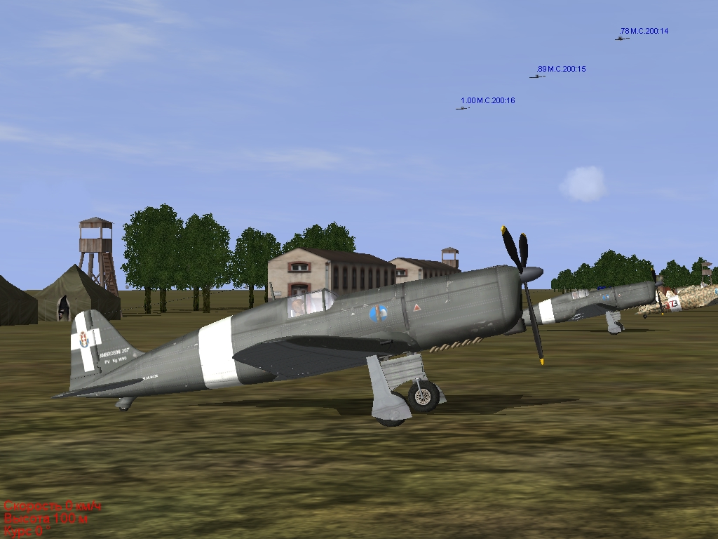 Поэтому, при создании двух миссий с применением этого самолета я использовал не реальную, а альтернативную историю, передвинув временные периоды и место действия. Два самолета SAI. 207, для прохождения войсковых испытаний, я отправил на Восточный (Русский) фронт. Первую миссию я назвал «Истребитель SAI. 207». Миссия сделана в ДГЕН ПАКе 2.1 на дефолтной карте Donbass (autumn). Немного предыстории. В июле-августе 1941 года на советско-германский фронт прибыл Итальянский экспедиционный корпус (CSIR) в составе более 62 тыс. солдат и офицеров (все подробности об этом корпусе в статьях, которые я выставляю ниже). В составе корпуса была и итальянская авиация (это, в основном, истребительные, бомбардировочные и военно-транспортные авиа части). В качестве истребителей применялись, в основном, самолеты МС-200 «Saetta» (Стрела) 3-ей и 7-ой серий. В качестве бомбардировщиков применялись легкие Са-311 и средние CANT Z.1007bis (а немного позже и BR-20M). В качестве самолетов ВТА применялись Са-133 и SM-81. В июле 1942 года Итальянский экспедиционный корпус (CSIR) был преобразован в 8-ую Итальянскую армию в России (ARMIR) с численностью личного состава более 227 тыс. чел. А в начале сентября 1942 г в состав авиации ARMIR в небольших количествах начали поступать новейшие итальянские истребители МС-202 «Folgore» (Молния). Свою миссию я как раз и приурочил к этому событию – в начале сентября 1942 года в состав 356-ой авиа эскадрильи отдельной 21-ой итальянской авиагруппы поступают три истребителя МС-202 (как и в реальной истории) и два истребителя SAI. 207 (для прохождения войсковых испытаний – как в альтернативной истории). Немного информации о реальной 21-ой итальянской авиагруппе. Она состояла из 4-х авиа эскадрилий: 356-ой, 382-ой, 386-ой и 361-ой – в сентябре 1942 г она имела на вооружении истребители МС-200 7-ой серии. В это время эскадрильи авиагруппы базировались на аэродроме Кантемировка (это севернее Ворошиловграда, ныне это г. Луганск). Но, при создании миссии, я столкнулся с проблемой – оказывается, на дефолтной карте Donbass (autumn) нет аэродрома в районе населенного пункта Кантемировка!!!? (а он должен быть обязательно! - это был очень известный военный аэродром). Поэтому в своей миссии я «посадил» 21-ую авиагруппу на аэродром Миллерово. В реальной истории осенью 1942 г в расположении войск ARMIR побывал первый секретарь Итальянской фашистской партии Альдо Видуссони (Vidussoni) – цель его прибытия, поднять боевой дух солдат и офицеров 8-ой Итальянской армии. Скины самолетов-участников миссии я выставляю здесь – их надо установить в вашу мод сборку. Текст брифинга миссии «Истребитель SAI. 207»: Восточный фронт, 7 сентября 1942 года, 21-ая отдельная итальянская авиагруппа, 356-я авиа эскадрилья, русский аэродром Миллерово, время 9-00 час, метеоусловия простые. Вы итальянский летчик-испытатель, в начале сентября 1942 года вместе с ведомым прибыли с двумя новыми цельнодеревянными истребителями SAI. 207 на Восточный фронт на аэродром Миллерово для проведения войсковых испытаний этих самолетов. Вместе с вами на этот аэродром прибыла и тройка новейших серийных итальянских истребителей МС-202 «Молния». В первых числах сентября в 8-ую Итальянскую армию из Италии прибыл первый секретарь Итальянской фашистской партии Альдо Видуссони с целью инспектирования итальянских войск в России и поднятия их боевого духа. Вчера командировка Видуссони закончилась, а сегодня он 