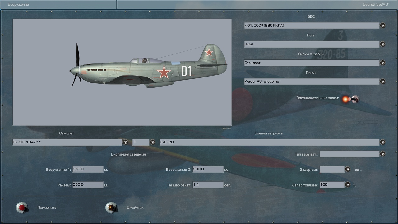 Здесь выставлен новый Як-9П. Поставил в БАТ, в модуль реактивной эры, работает только вооружение 3х20 и 1х23, 2х20. 37, 45, 57 мм пушки, прописаны в вооружении, но как класс) отсутствуют. Отражаются только Б-20. Только у меня так? Как я понимаю, идет наложение - в модуле есть Як-9П с разным оружием, а данный , новый Як-9П - имеет только 3 Б-20. Последний раз редактировалось andrey65; 20.09.2020 в 07:00. |