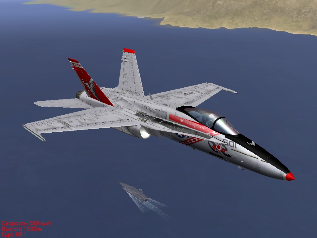 Короткий брифинг: Вы ведущий пары палубных истребителей F-18C. Необходимо произвести посадку на палубу неподвижного авианосца «НИМИЦ». Погода ПМУ. |