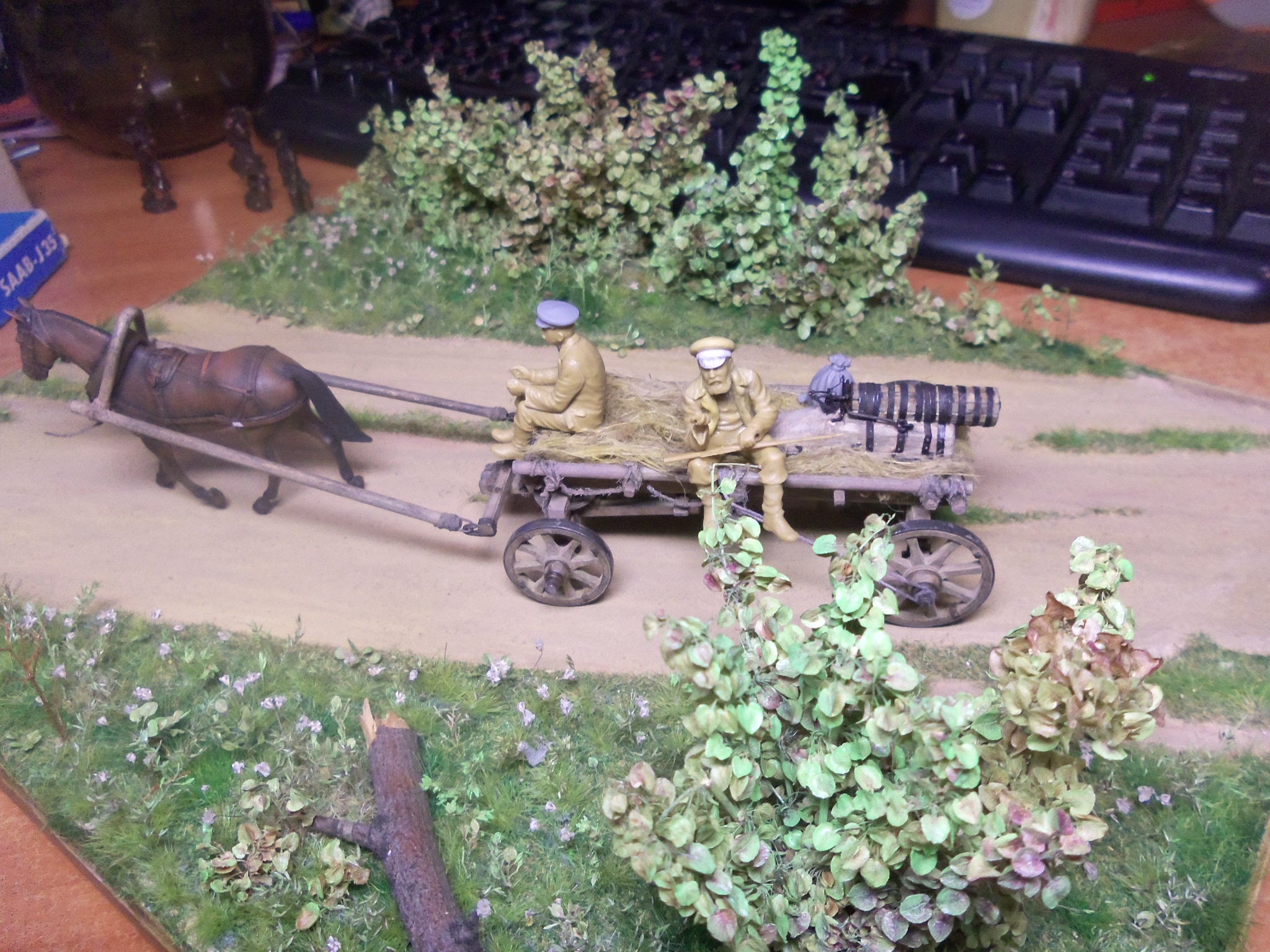 Готовимся к выставке по гражданской в Сибири. Основа диорамы готова, осталось расписать фигуры и лошадь.