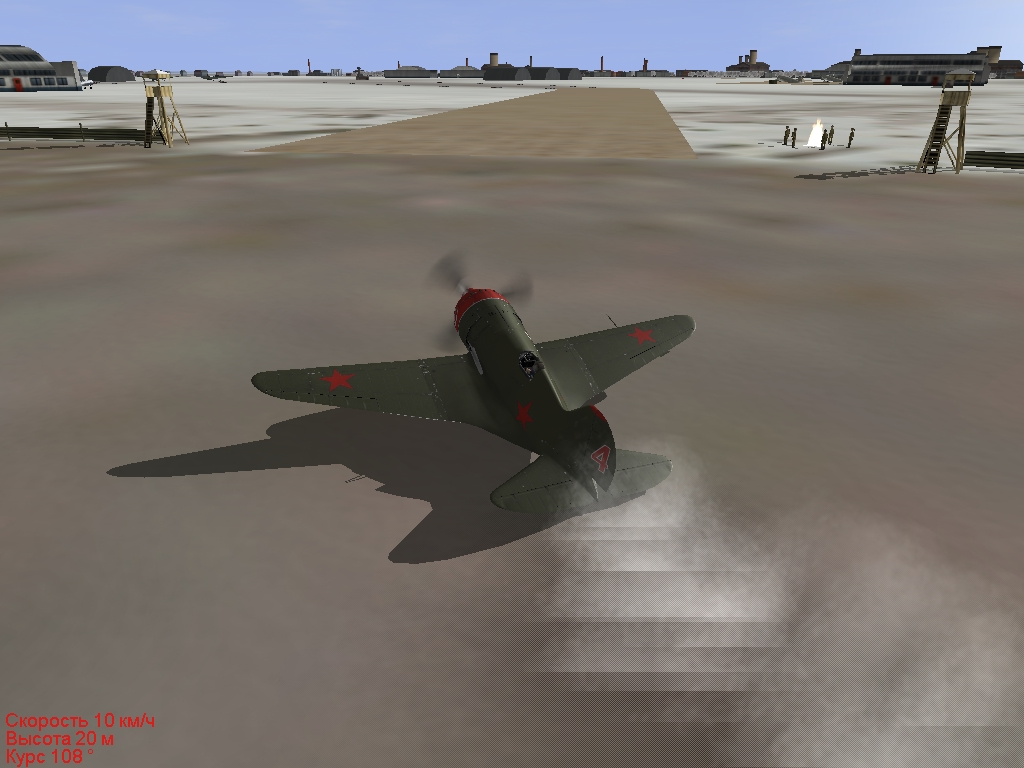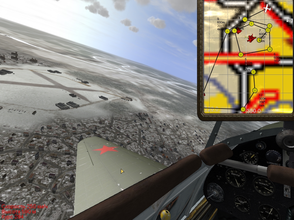15 декабря 1938 года, Город Москва. Центральный аэродром им. М.Фрунзе (Ходынка). Время: 13 час 00 мин. Метео условия: простые, легкие кучевые облака с нижним краем 2500 м. Резко похолодало - температура наружного воздуха минус 25 градусов. Скин самолета: I-180 red guard. bmp На сегодня, после срочного устранения всех неисправностей, влияющих на безопасность полетов, запланирован первый контрольный полет опытного новейшего истребителя И-180 конструктора Н.Поликарпова. Но, пока, на самолет не удалось установить безотказную систему привода заслонок-жалюзи, регулирующих поток воздуха, идущего на охлаждение мотора. Необходимо помнить об этом и для предотвращения переохлаждения мотора в полете держать повышенные обороты. ПОЛЕТНОЕ ЗАДАНИЕ: Маршрут полета указан в вашей полетной карте. Запустить и прогреть мотор, вырулить на ВПП, произвести взлет, ШАССИ НЕ УБИРАТЬ, набрать высоту 100-120 метров, выполнить левый круг над аэродромом с набором высоты до 500 – 600 метров. Скорость полета на всем маршруте не должна превышать 300 км/час. Проверить устойчивость и управляемость самолета в полете и работоспособность его систем и приборов. Выполнить второй круг на высоте 600 метров, зайти на посадку на вторую ВПП аэродрома (посадочный курс 153 градуса), произвести посадку и зарулить на стоянку ЛИС (руление выполнять плавно и осторожно!). В реальной истории после выполнения первого круга над Центральным аэродромом (в соответствии с полетным заданием) В.Чкалов начал совершать второй круг. Но этот круг, в нарушение полетного задания, выполнялся не строго над аэродромом, а с уходом на юго-запад от аэродрома (в зону московского исторического района Фили и 22-ого авиационного завода – ориентир его заводской аэродром). Развернувшись над Филями, В.Чкалов начал заходить на посадку на Центральный аэродром с плавным снижением. На удалении 1-1,5 км от ВПП аэродрома на высоте примерно 100 метров двигатель самолета И-180 внезапно заглох. Под самолетом были московские жилые дома. В.Чкалов пытался маневрировать на теряющем скорость и высоту самолете, уводя его от столкновения с домами – грубая посадка самолета произошла на захламленной территории дровяного склада «МосжилГосстроя» (ул. Магистральная д.13), при этом произошло разрушение самолета, а летчика выбросило из кабины на груды строительного мусора и он получил тяжелые травмы. Работники склада срочно отправили В.Чкалова в недалеко расположенную Боткинскую больницу, где В.Чкалов, не приходя в сознание, скончался. В большинстве версий гибели В.Чкалова утверждается, что останов мотора самолета И-180 произошел из-за его переохлаждения при планировании самолета на посадке и работе мотора на малых оборотах. В конце полетного задания на посадочном курсе 153 градуса в точке №18 маршрута полета на высоте 200 метров надо выключить двигатель (т.е. выполнить имитацию его самовыключения), произвести планирование и посадку на ВПП Центрального аэродрома – постарайтесь дотянуть до ВПП, если это удастся, срулите с ВПП на грунт (в снег) – самолет потом отбуксируют на стоянку ЛИС. |
