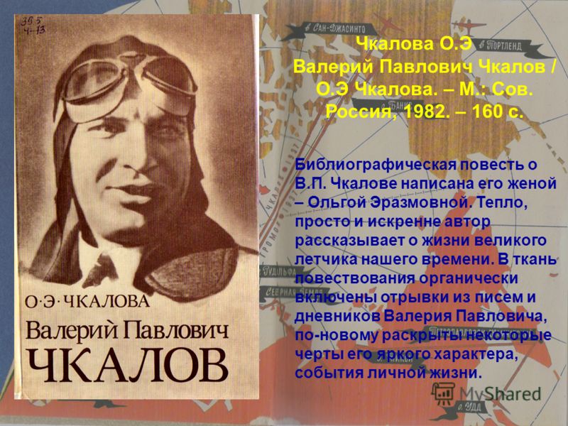 - ХУДОЖЕСТВЕННО-ДОКУМЕНТАЛЬНЫЙ ФИЛЬМ «ЧКАЛОВ. МИФЫ И ФАКТЫ» - ссылка: https://www.youtube.com/watch?v=WsJs0YMKmsM - ДОКУМЕНТАЛЬНЫЙ ФИЛЬМ «ЖИЛ БЫЛ ЛЕТЧИК» - ссылка: https://yandex.ru/video/preview/?tex...43370215391378 |