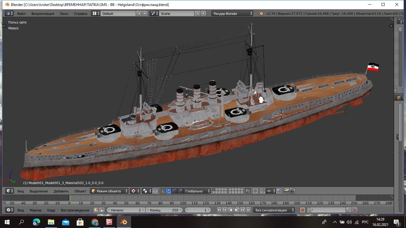 ). Честно-тянутый из "Ютланда", Остфрисланд. Тот самый, первый потопленный авиацией. Добавлять его как линкор в игру смысла нет, а вот как корабль-мишень, да. Есть интересные мысли по поводу деления корабля на более мелкие части. На физику модели повреждения мы повлиять не можем. А вот детонацию погребов воспроизвести можно попробовать. Но это дело нескорое. Пока не закончу все старые проекты, ничего нового начинать не буду.