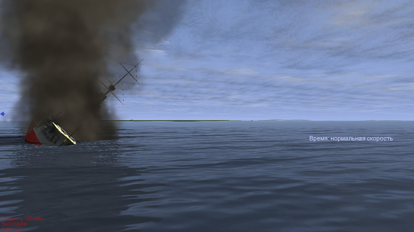 Повреждение носовой секции сразу вызвало крен в 45о, как и требовалось, скрины 2,3. Повреждение носовой и центральной секций положило корабль на борт, скрин4, а дополнительное повреждение кормовой секции перевернуло кораблик скрин 5. Оверкиль! После чего мой самолет самым дурацким образом ткнулся в воду. Конечно модель затопления кораблей в Ил-2 несовершенна. Следует понимать, что даже перевернутый но не уничтоженный корабль а Ил-е будет плыть, только чуть медленнее. Даже перевернутый корабль дымит как толпа паровозов скрин 5. Интересно, будут ли стрелять орудия из-под воды или с вертикально стоящей палубы. Вопросов много. Попробую переполовинить кораблик на четыре части Hull. |