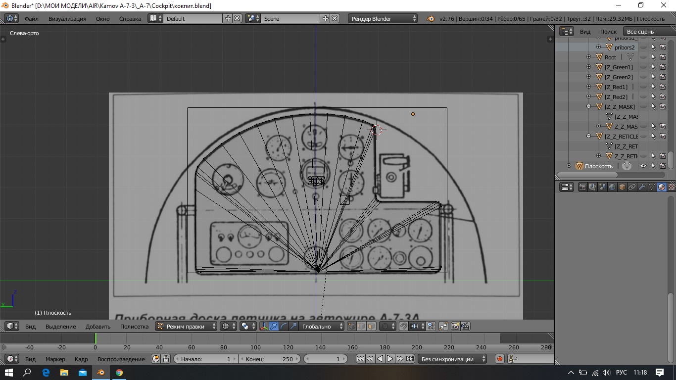Продолжим. После "раздевания" кокпита И-16 образовалась, вот такая вот приборка (см. скрин). В следствии моих косяков некоторые приборы отображаются мягко говоря криво. Буду переделывать, а эту модель использую как черновой вариант. Коллеги, подскажите, существует ли в природе внятный мануал по изготовлению новых кокпитов или имплантации готовых в новую модель?