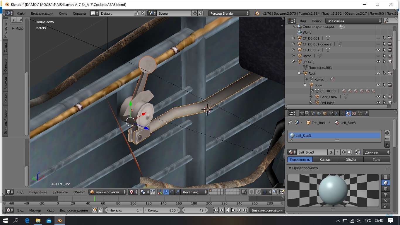 Долго-нудно возился с простой казалось бы анимацией привода сектора газа. Требовалось добиться поступательного движения троса, однако получалось вертикально-угловое движение. Как если бы трос был чем то жестким. Проблему победил, но в ней не разобралсяю