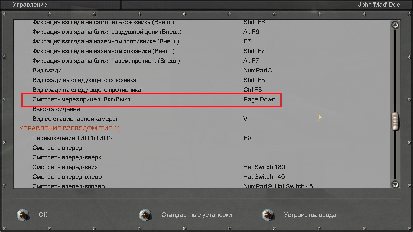 Вообще то команда в управлении называется "прильнуть к прицелу". Возможно ты включаешь бомбардировочный прицел