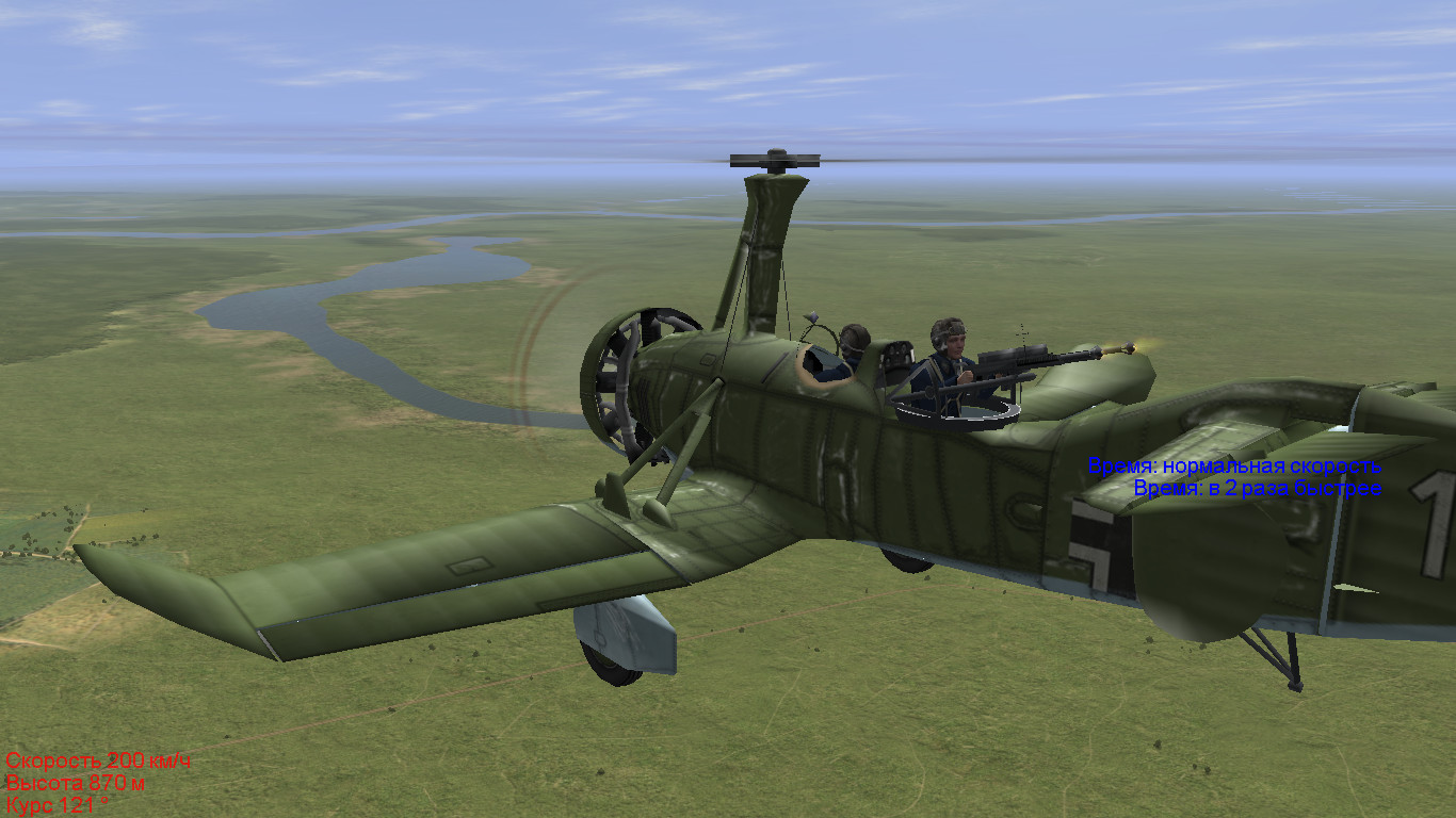 Заработать то оно заработало, только отражает оно не все, что надо. Если на взлете и в режиме полета все нормально, видны только пулеметы. То в бою видно, что управляет ими "невидимко". То есть стрелка-наблюдателя не видно.