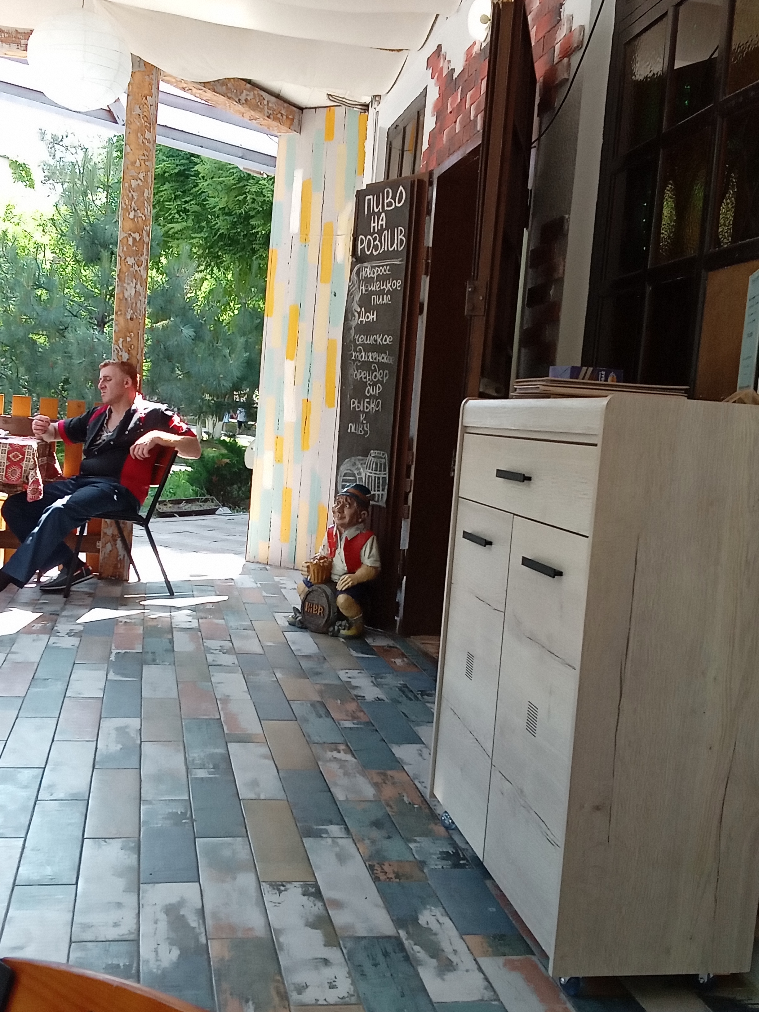 Там шашлычником работает армянчик. Ну, вот...абсолютно рыжий. Один мой приятель говорил, что настоящие армяне рыжие. Я, помятуя его убеждения решил увековечить такое событие. Ну, ведь не каждый день наскочишь на настоящего армянина. Кто не верит, может убедится посетив кафе "Кубрик" на углу улицы Пушкина и Греческого переулка. |