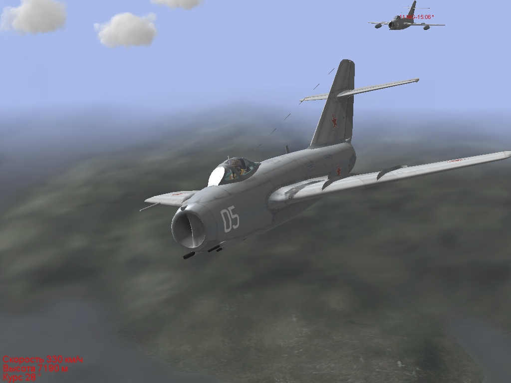 27 мая 1958 г., Заполярье, аэродром Луостари, 769-ый ИАП ВВС СФ, время 9 час 00 мин, погода – ПМУ. В середине марта Вы были допущены к самостоятельным полетам на истребителе МИГ-15БИС, а в начале апреля приступили к освоению групповых полетов в составе пары, а затем и звена. Сегодня Вы участвуете в плановых групповых полетах в 1-ую смену. Полетное задание: Выполнить групповой полет в составе пары на истребителях МИГ-15БИС по заданному маршруту на высотах от 2000 м до 7000 м. Вы назначены ведущим пары, маршрут полета указан в полетной карте. Часть маршрута проходит над Баренцевым морем. При полете над г.Мурманском строго выдерживать высоту 2000 м. После выполнения полетного задания произвести посадку на аэродром Луостари (посадочный курс 218 градусов) и зарулить на свою стоянку. Будьте внимательны и осторожны – в районе аэродрома Луостари производятся интенсивные плановые полеты, в воздухе много самолетов! Скин вашего самолета: стандарт. Вариант вооружения: 2 х Подвесных бака. |