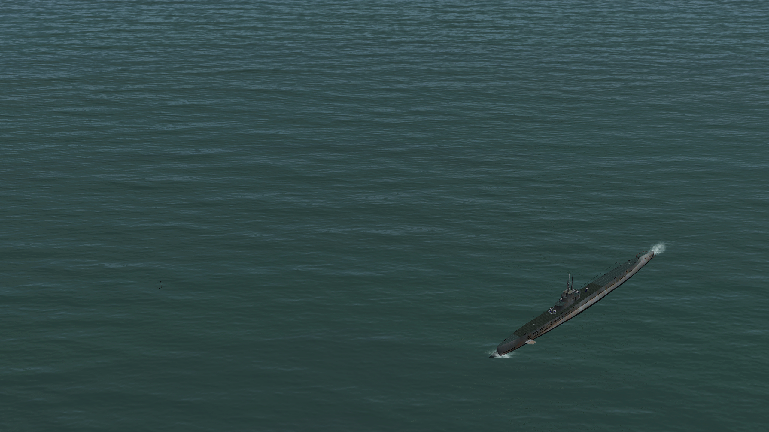 - в военной к/х, да и в х/фильмах всплывший мусор показывают вблизи и даже можно разглядеть что там и смотрится это очень атмосферно, а в игре такое не пройдёт - размер не тот;