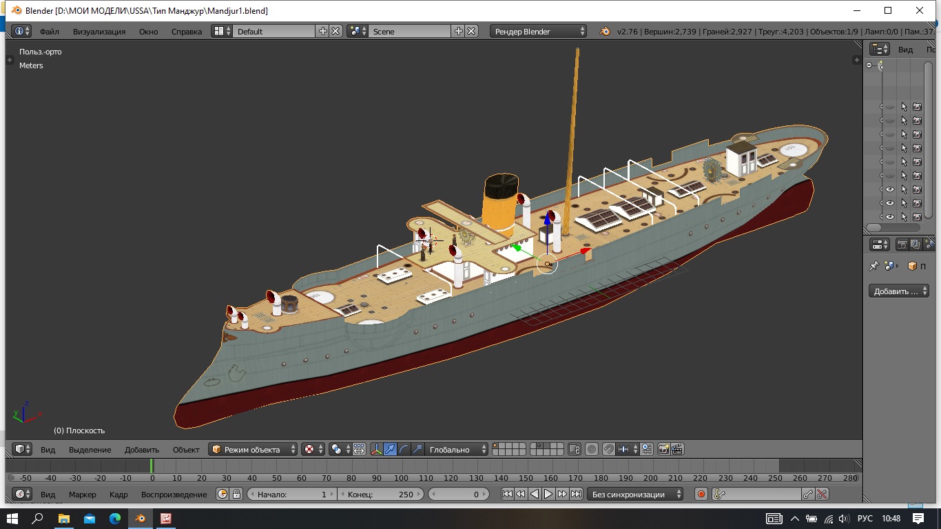 Перерисовал скин под двустороннюю визуализацию борта и вырезал порты под 9 фт. пушки (107мм). Отдыхаем дальше. |