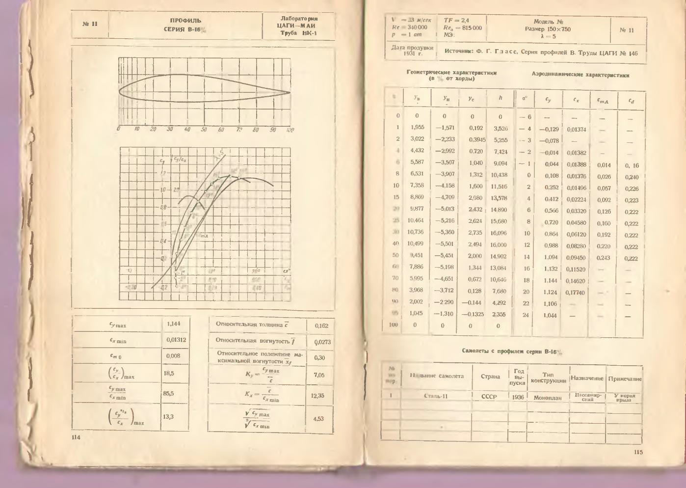 про И-180 - относительно профиля - не увидел. Остаётся только логика и глазомер. http://www.airwar.ru/enc/fww2/i180.html Вот разрез крила И-180. http://www.airwar.ru/image/idop/fww2/i180/i180-2.gif Картинки профилей ниже. Нужно ориентироваться на острый носик и немного отогнутый хвостик. Как видим профили НАСА не подходят - низ крила имеет волнообразный профиль. На Ишаке-16 был "точно" Кларк игрек-15 модифицированный до 16 проц. Поставлю на И-180 тот профиль, который будет выбран общим решением ![]() учасников авиаскинса.