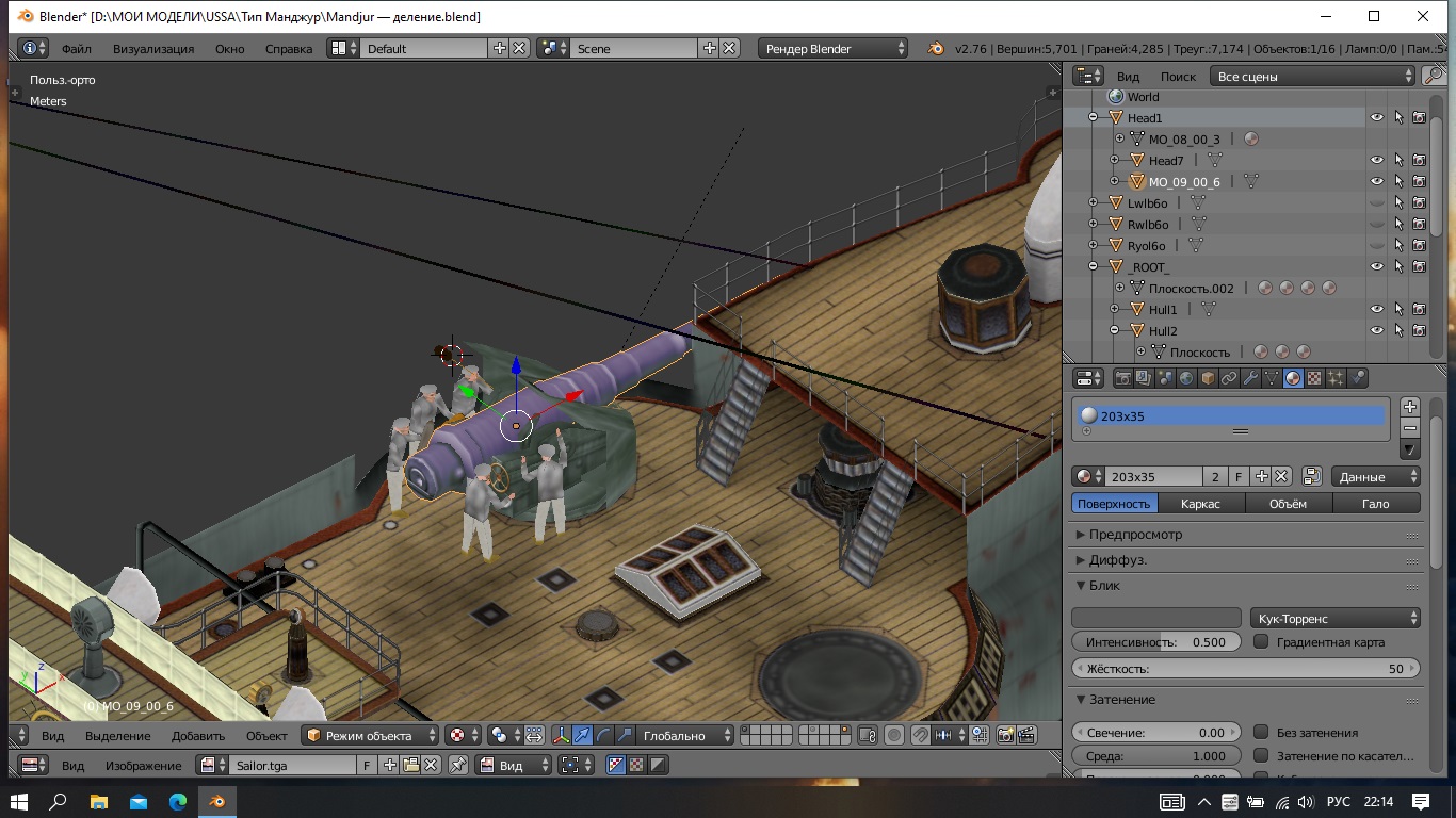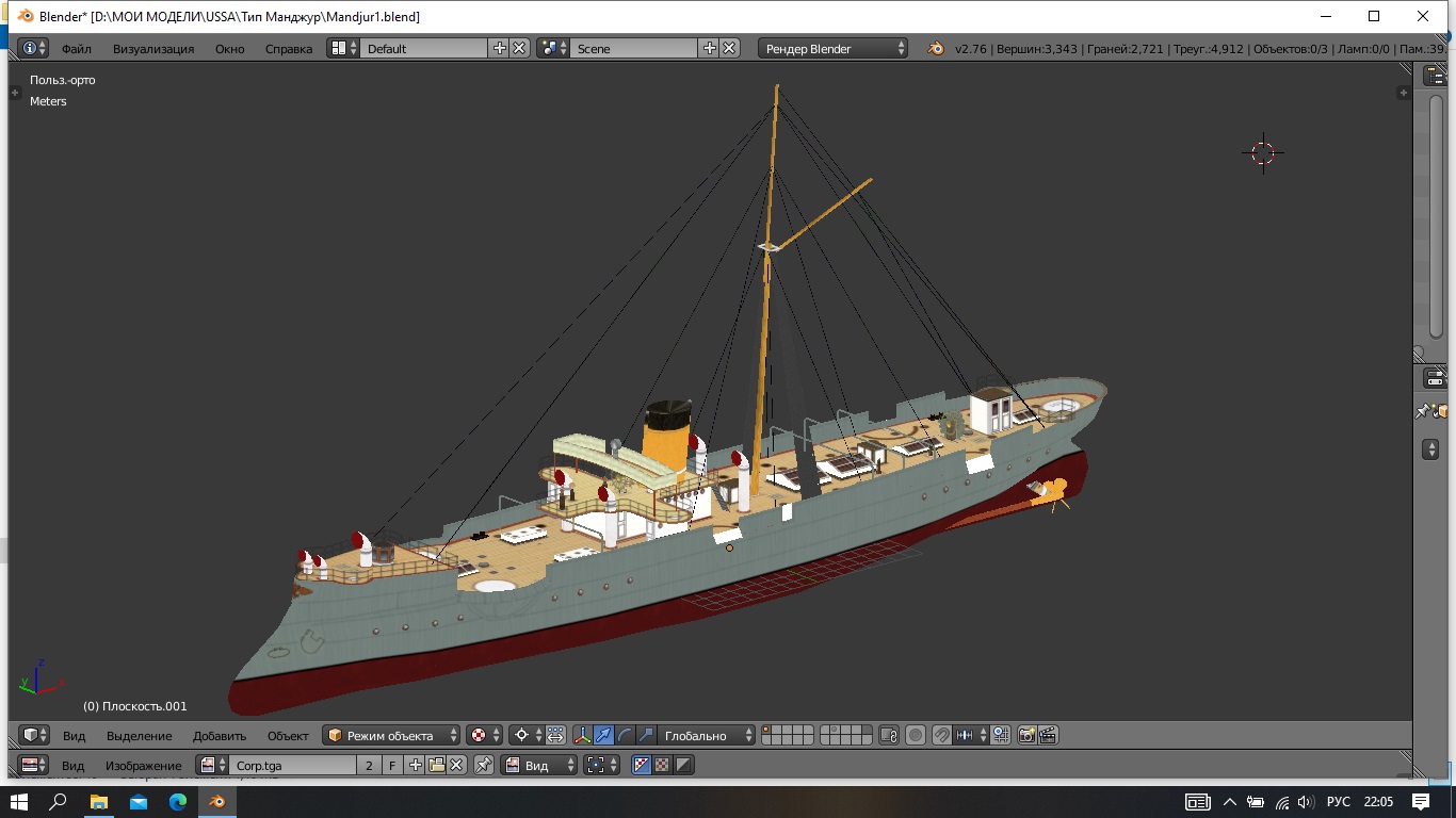 Закончил базовую 3д модель. Теперь работа с скинами: затенить, запачкать, покрыть ржавчиной, копотью. Добавить флаг.