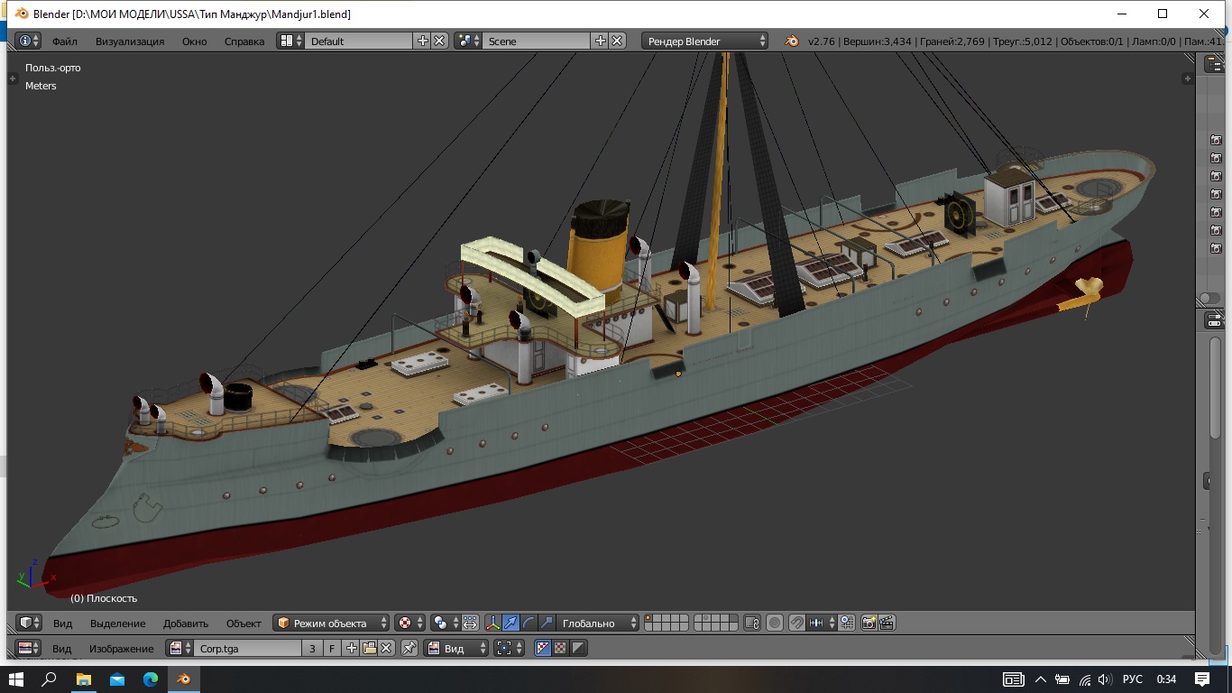 Закончил базовую 3д модель. Теперь работа с скинами: затенить, запачкать, покрыть ржавчиной, копотью. Добавить флаг.
