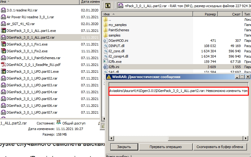 Здравствуйте уважаемый Asura. Была у меня копия игры версии 4.13.4. Обновил её до 4.14.1 и произвёл полную установку (все три части) DGenpack 3_0_1. Установил также оба фикса. Игра запускается, в простом редакторе выбираю Ан-26 с 38 парашютистами, старт в воздухе, карта Крым. Миссия стартует в полной тишине, несколько секунд и зависает(как будто на паузе). Выхожу из миссии штатно. Прошу Вас глянуть лог и посоветовать, как мне это исправить.
