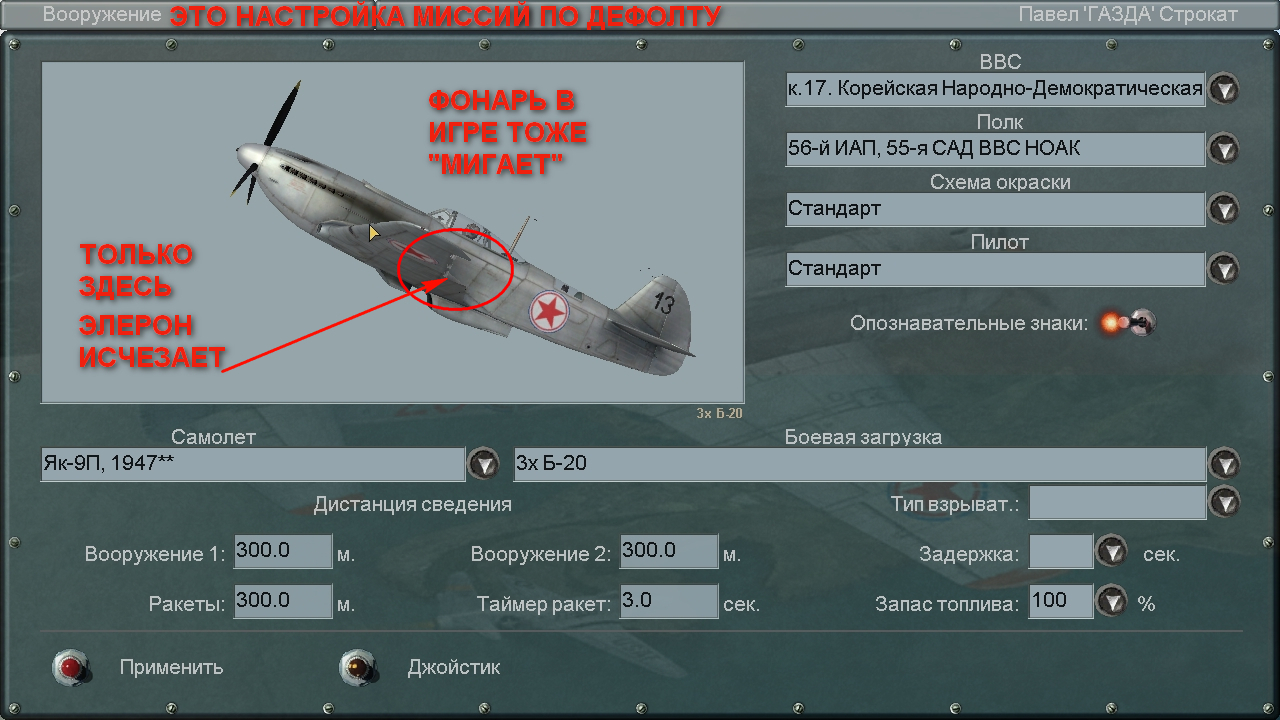 В логе не было точного определения ошибки, обычное java.lang.NullPointerException и т.п. Пришлось методом тыка. Таки нашел 1-ю причину сбоя: 1. С Полным списком Селектора в ФМБ назначаю синему стационарному самолету страну Южная Корея, потом скин дефолт, ОЗ+, Сохранить как. 2.Выхожу из ФМБ, из игры, потом снова захожу, перезапускаю миссию - эйр-статиков синих нет. 3.Захожу в ФМБ, там они есть, но уже не Ю.Корея, а Германия, причем, ВСЕ синие эйр-статики Германия. 4.Выхожу из игры, см. файл миссии: все коды страны для синих kq, коды для красных kp, kx. 5.Опять иду в ФМБ, переназначаю Ю.Корею и США для синих, Сохранить как. 6.Выхожу из игры, см. файл миссии: коды страны для синих за Ю.Корею kr и kq (!), для США na. 7.Опять иду в ФМБ, см. эйр-статики на дромах: опять Германия у некоторых! 8.Выхожу из игры, во всех файлах миссий меняю kq на kr. 9.Перезапускаю миссию: эйр-статики Южной Кореи и США на дромах есть. Кстати, у красных эйр-статиков коды kp, kx меняются произвольно у одних и тех же крафтов в каждой следующей миссии при назначении страны КНДР в ФМБ. 2-я причина: забыл в эворд.пропертис переставить ту же награду, что и в эворд.пропертис-ру. Чтоб Героя Республики получить, бо она 8-я по факту, сделал 7-й. С бетоном из-за Решейд цвета меняются в зависимости от времени суток?