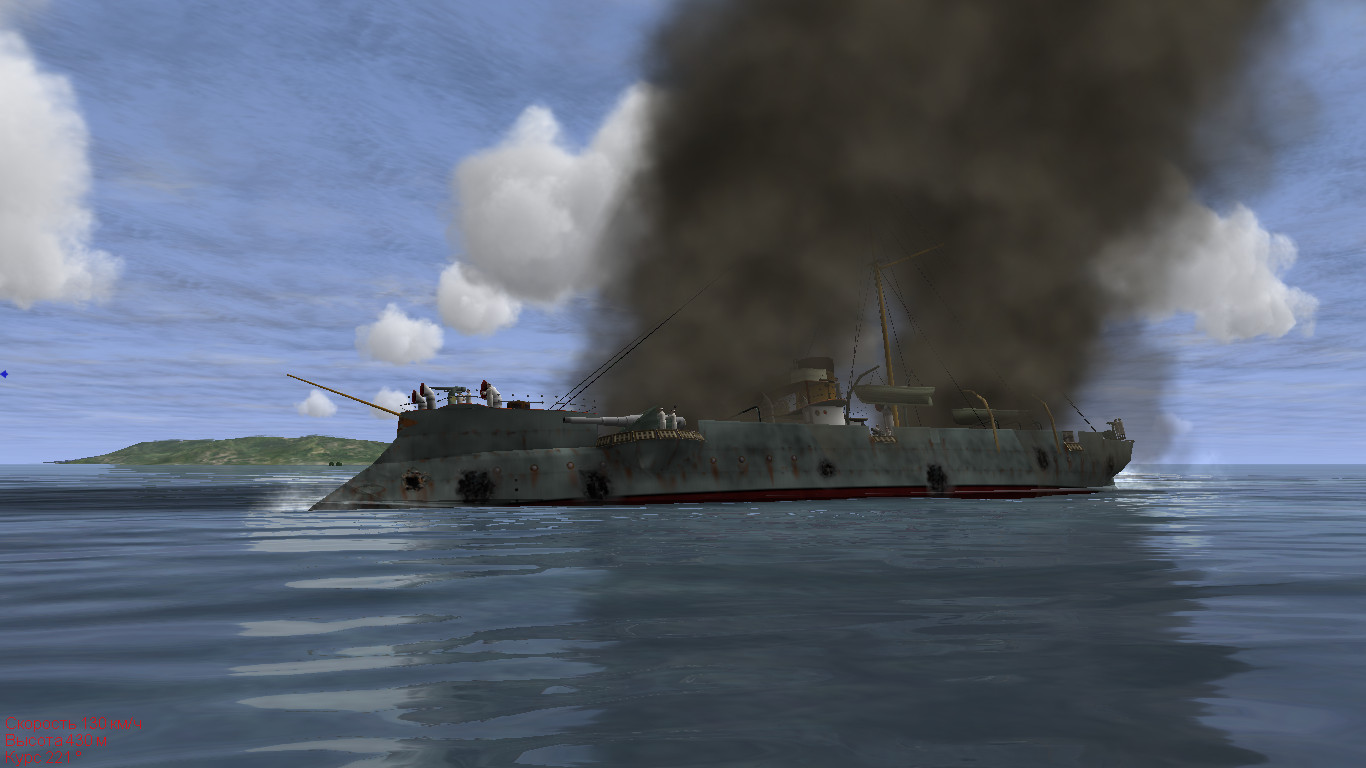Тестирую модель повреждения. На скрине кораблик получил две ТАН-12 и остался на плаву. Хотя обычно тонет.